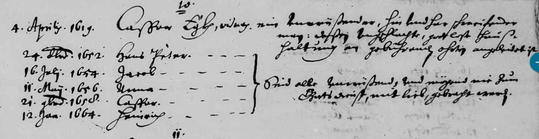 Hans Peter's mother is a Salome - can't really read her surname - but Ehedatenbank has a marriage Kaspar Egg with Salome Nufer in 1651.