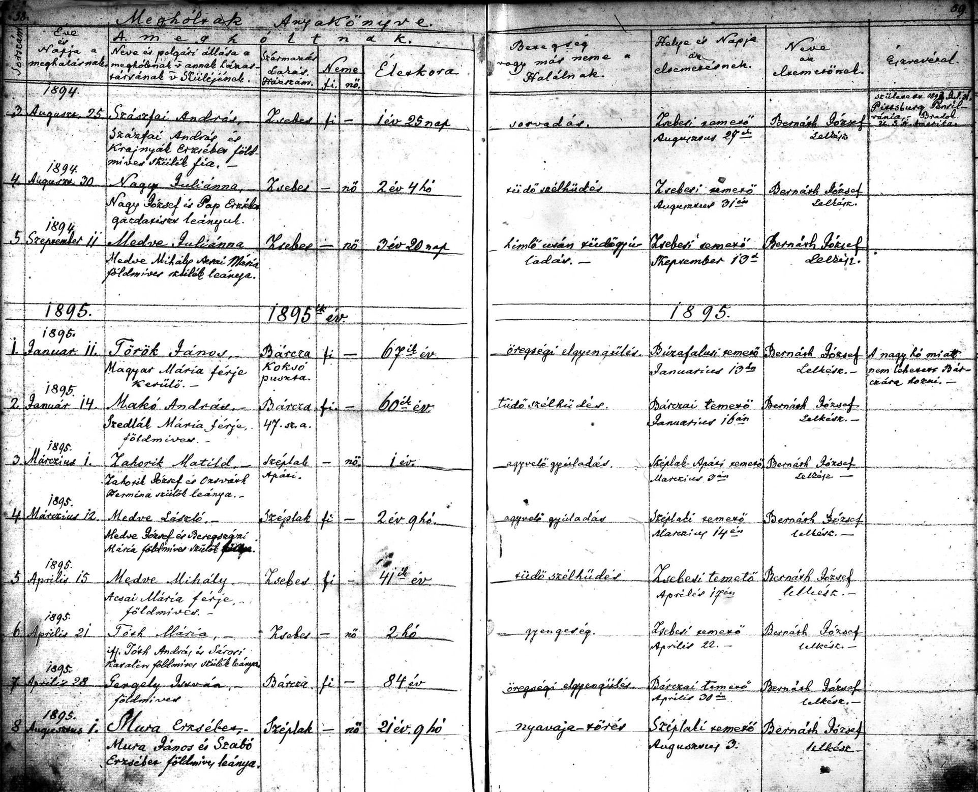 János Török, husband of Mária Magyar, ranger, origin and residence Bárcza, Koksó farm, male, 67th year