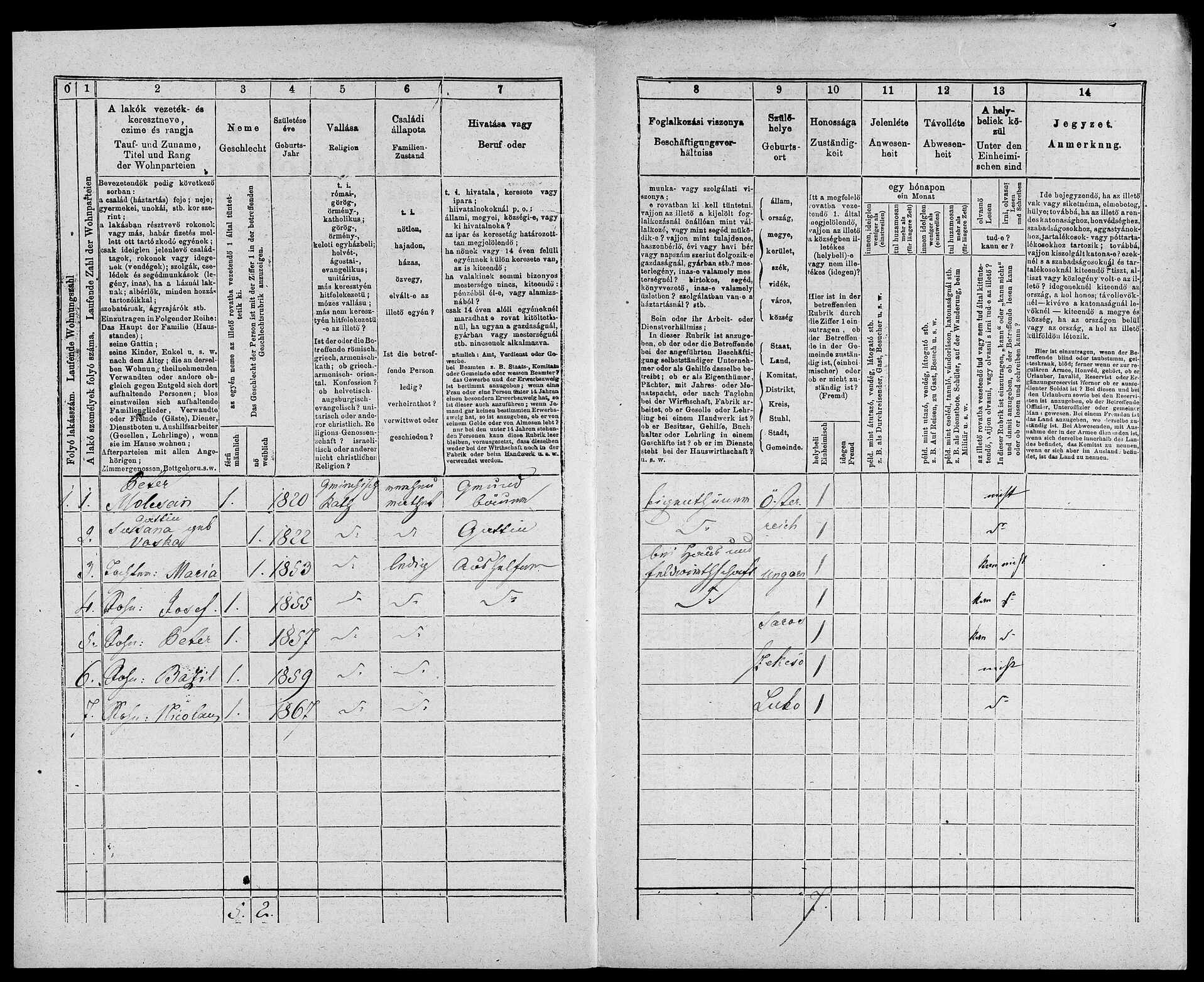 Bazil, male, b. 1859 in Szekeso, Catholic, single
