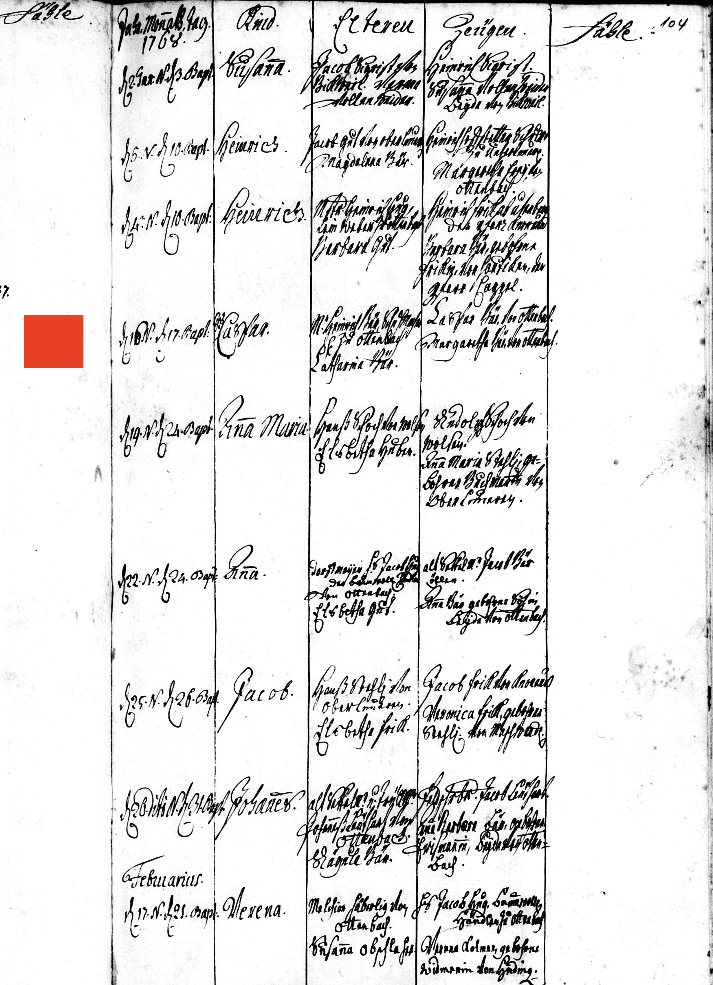 Ottenbach ZH - baptism - 1768 - Bär - Caspar