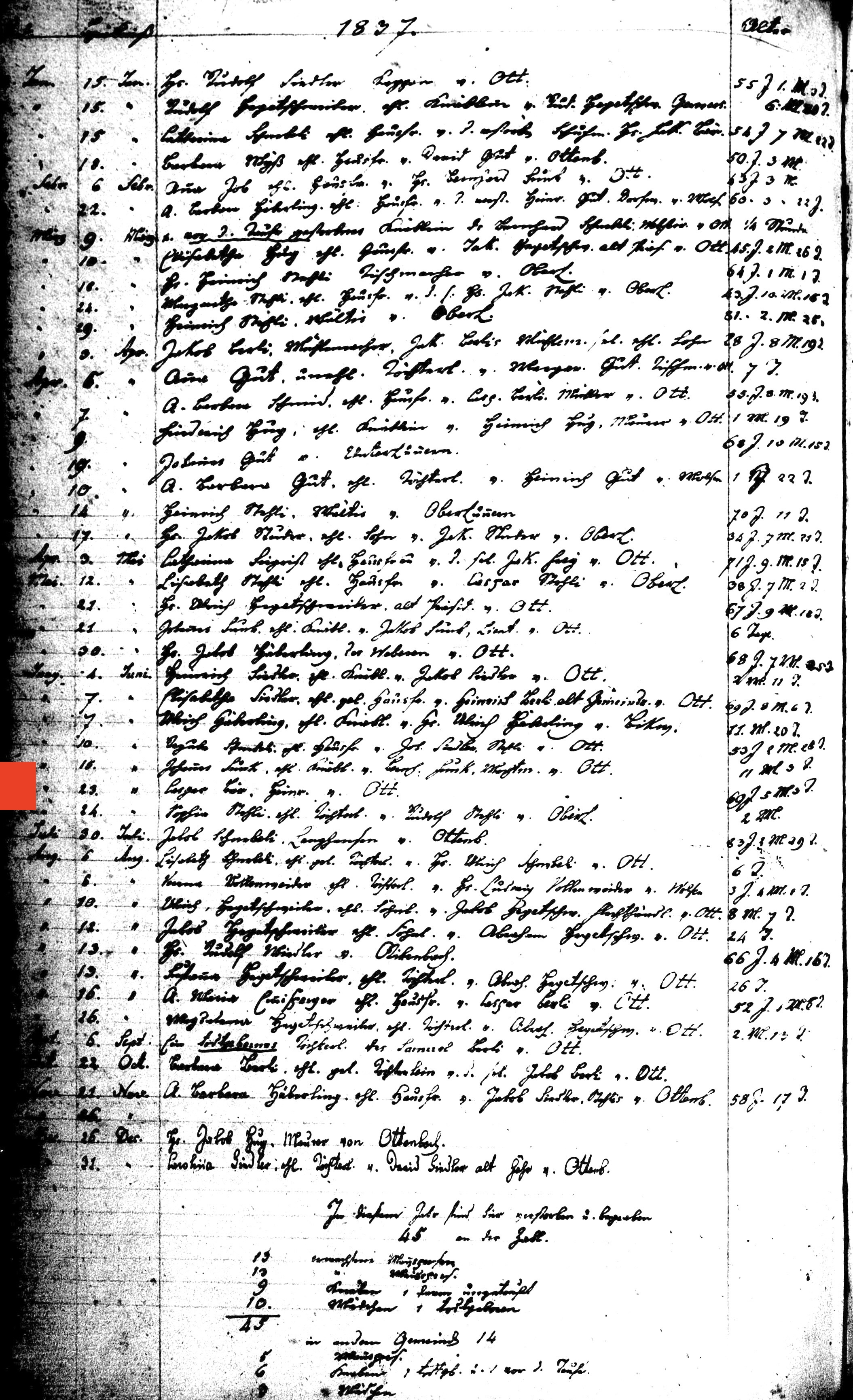 Ottenbach ZH - burial - 1837 - Bär - Caspar