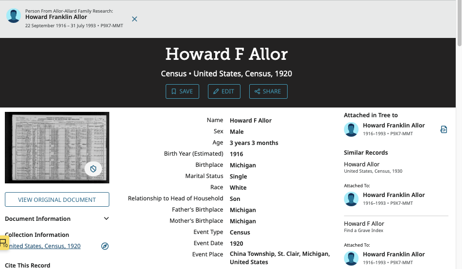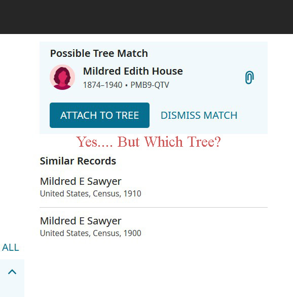 Along the same lines. When a record is found and a Possible Tree Match is indicated. Need some amplification as to which tree we are working in… Granted I got here by following a Research Hint, so you'd think I'd remember, but frequent 'reminders' about what tree we are wandering around in wouldn't hurt
