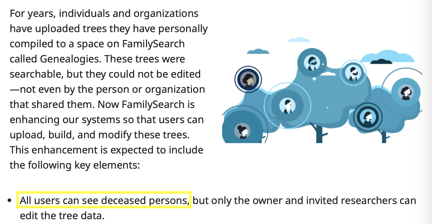 Second principle is that the only people who are going to have any interest in working on profiles for your deceased relatives are your living relatives or people who have gotten really confused and think your relatives are their relatives. Be kind to both groups.