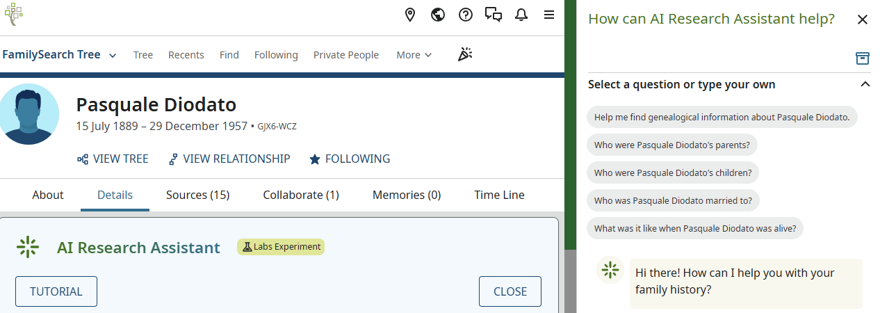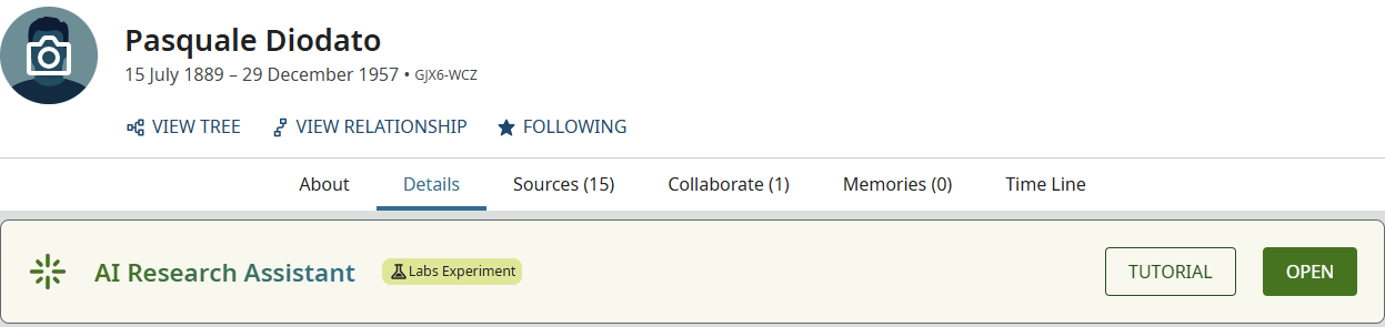I see how the AI help works with my family tree, but I thought is was also supposed to be able to help with searches about a single person. When I pull up the person of interest, I can't seem to find any way to ask the AI for assistance on just that one person. Is there a way to do this?