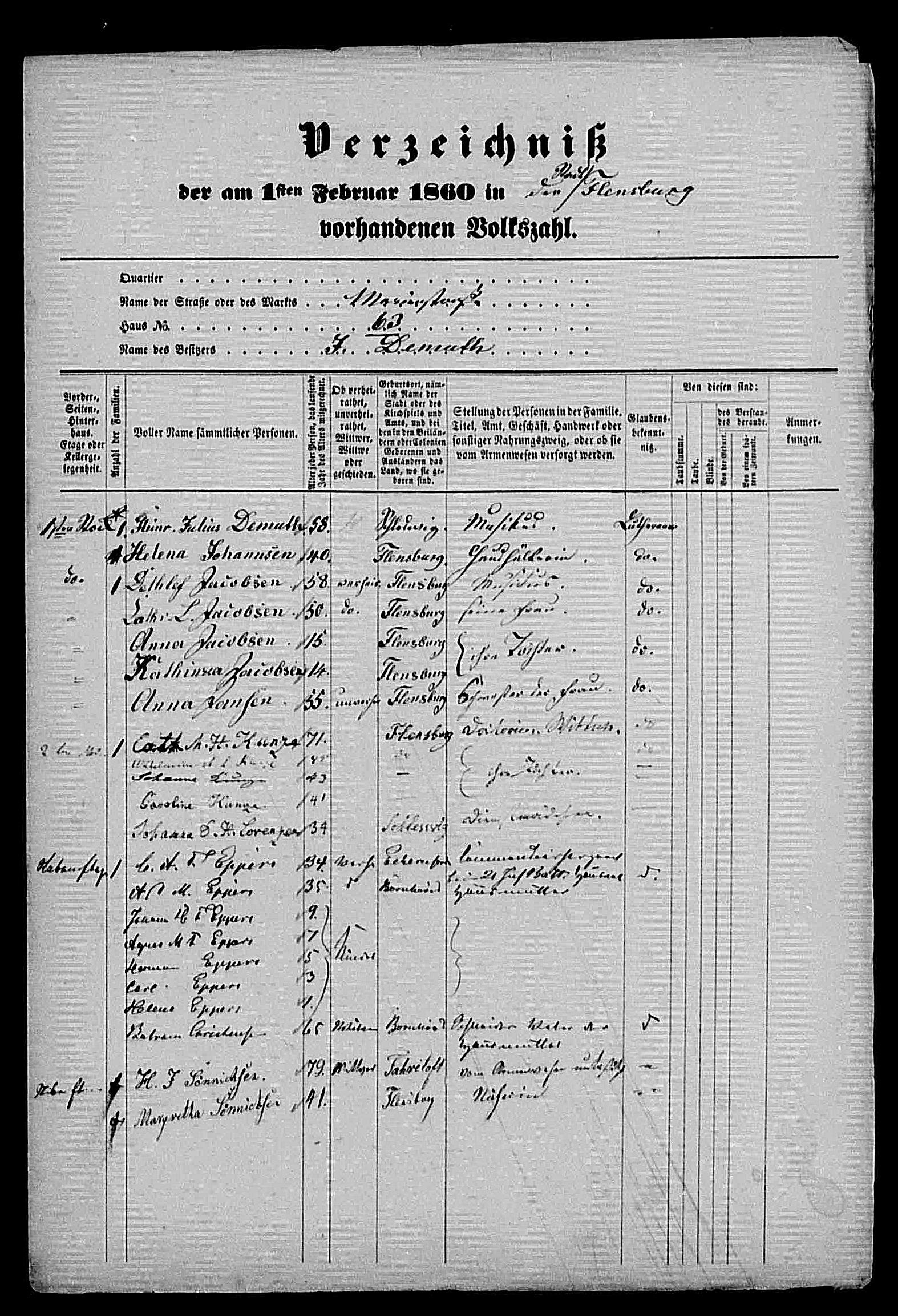 Flensburg was a German-speaking community in the Duchy of Schleswig, then under Danish rule. Note that the census is in German.