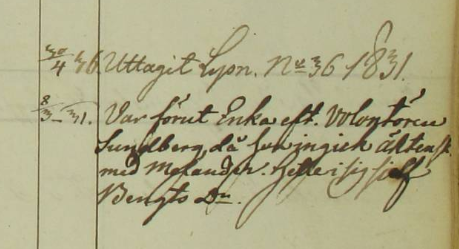 Was previously widow of the volunteer Sundberg, when she married Molander. Was herself called [that is had the maiden name] Bengtsdotter.