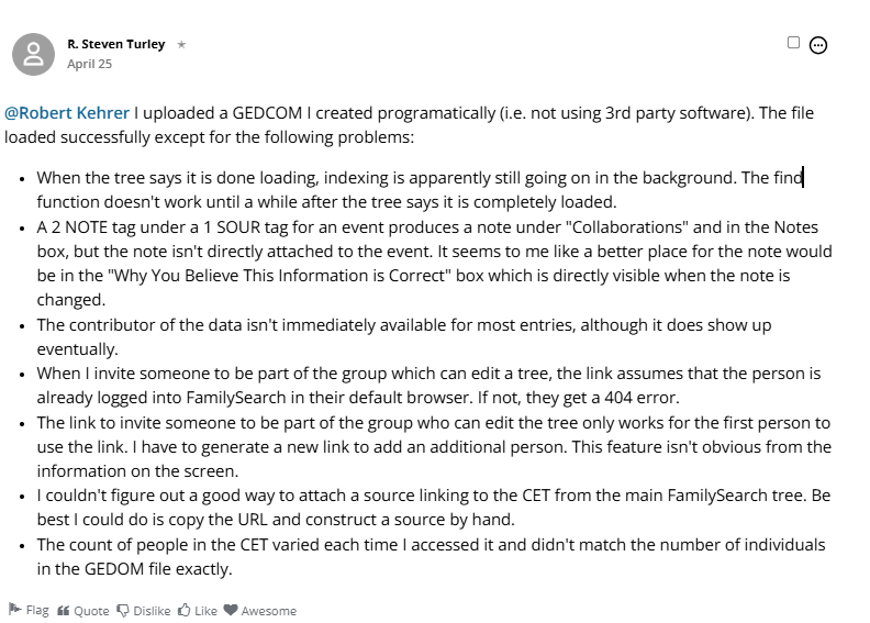 - Your first comment is correct. The GEDCOM is uploaded and then the process to convert the data to a CET runs in the background, so all data might not be immediately available.