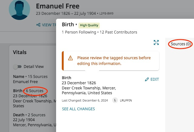 Looking at the profile L2PB-8W9, I see 6 sources for the birth on the pop-up: