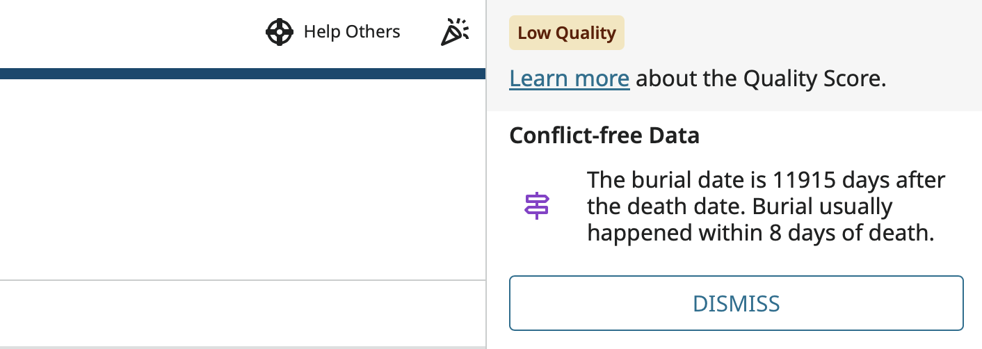 There is a hard stop for a burials before death. These have a non-dismissible flag because this will never be correct.