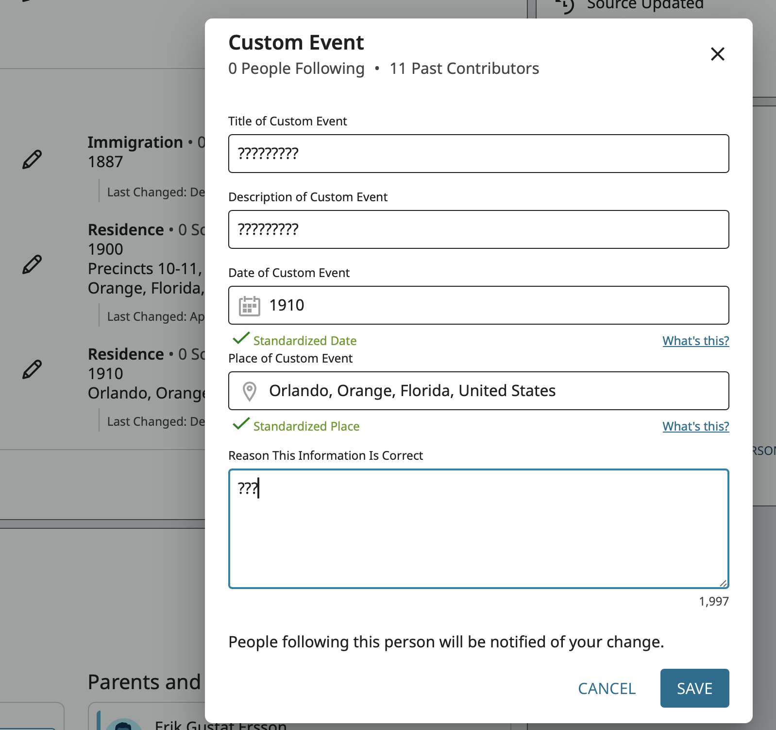 John August Eriksson Sjoblom 9W3G-8Z1 died in 1900 but he was moved to another cemetery in 1933. How should this be entered to avoid the conflicting data?