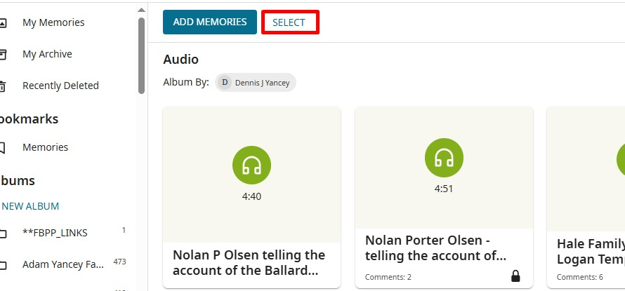 Can someone please confirm that the engineers are aware that the new SELECT facility in Memoires has a bug and the add to album doesnt work (at least for me - using Google Chrome on a computer).