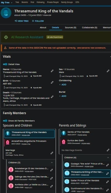 The steps that produced this were that I clicked the UPLOAD GEDCOM button, selected the GEDCOM file, and then waited for the upload to finish.