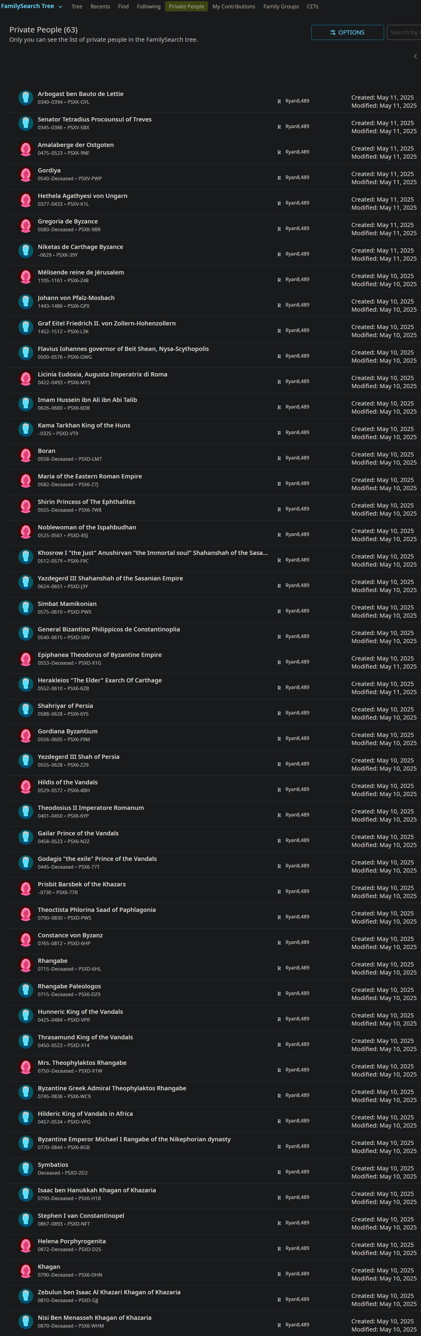 Since they're all LONG dead, here's a screenshot of all but two of the people that I didn't create. (For some reason, I can't get a screenshot that includes all 50 people that are on the page (but that's a screenshot issue, not a FamilySearch problem) and one of them is on the next page along with the living people that I did create.)