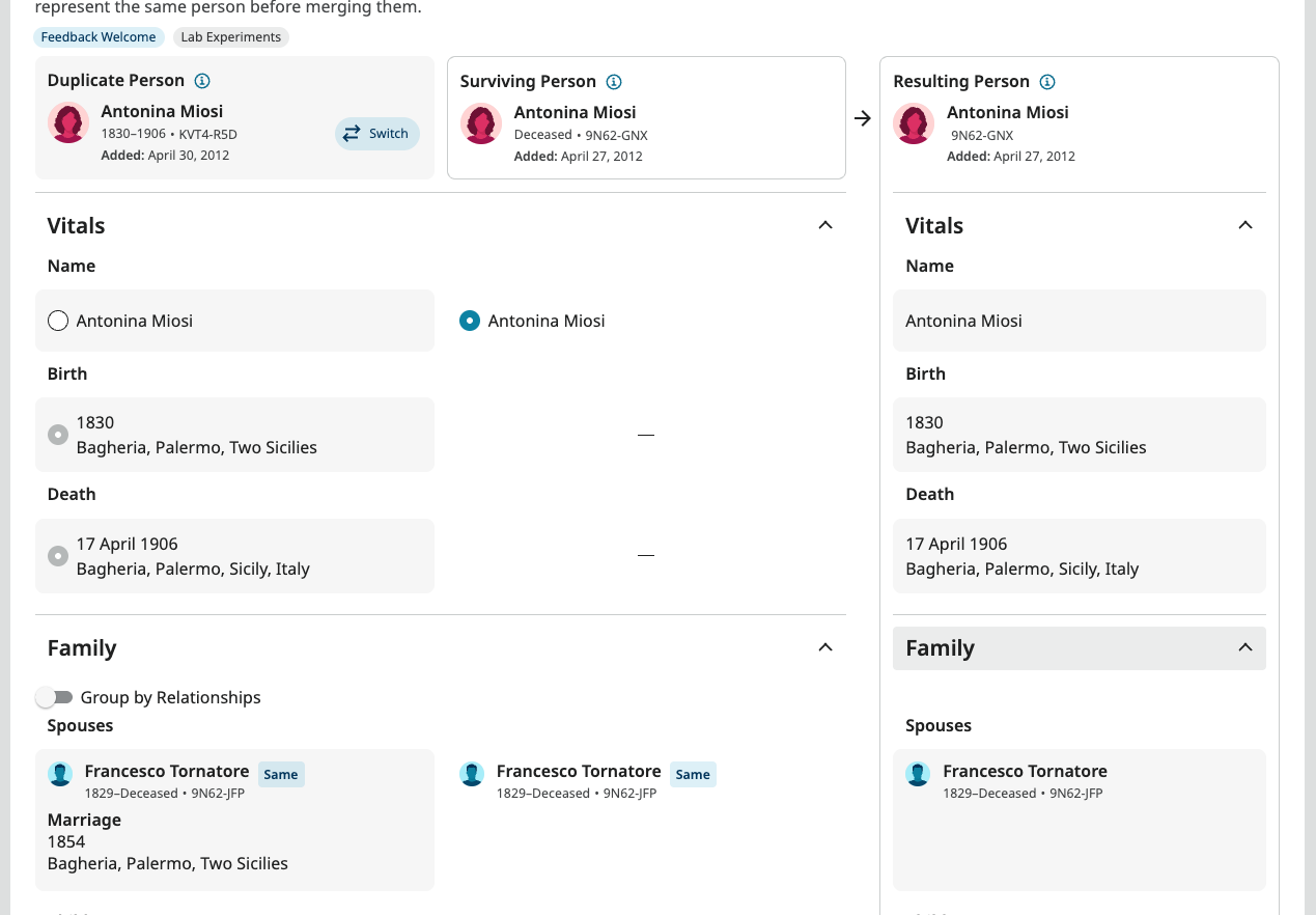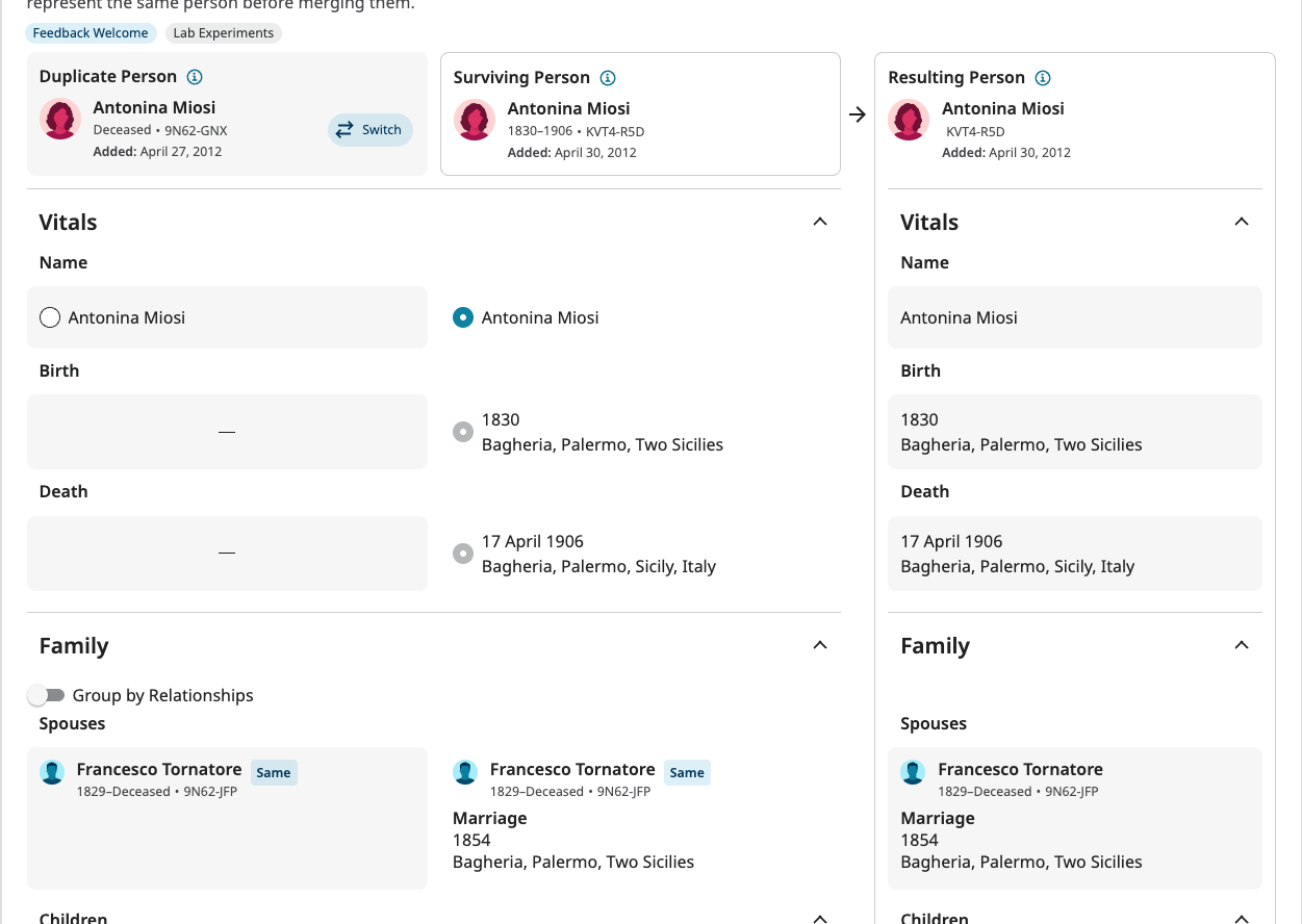 Marriage info is on duplicate person, but is not preserved on the resulting person: