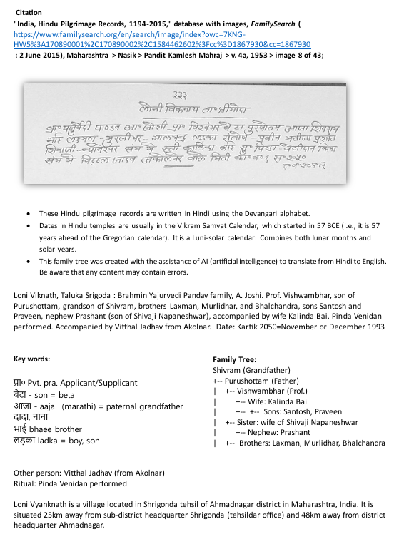 I’m also interested in understanding how I can share this information in a way that supports future efforts by FamilySearch to index historical documents from the Indian subcontinent. While I understand this is not currently a focus, I am hopeful that as technology advances, indexing Hindu pilgrimage records will become feasible within the next few years. I would like to contribute meaningfully to that process in any way I can.