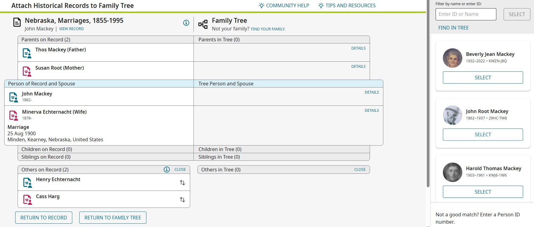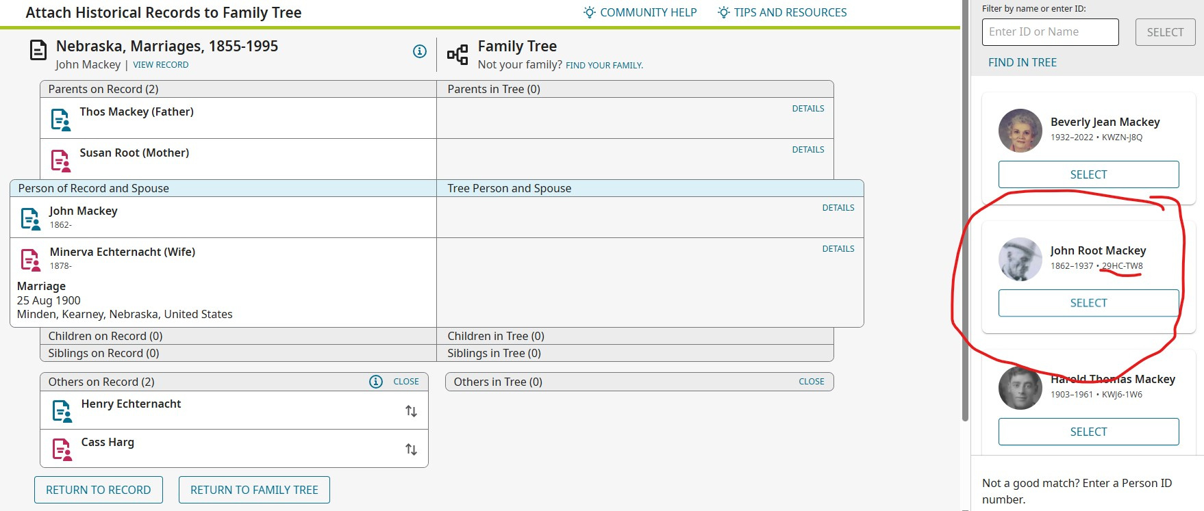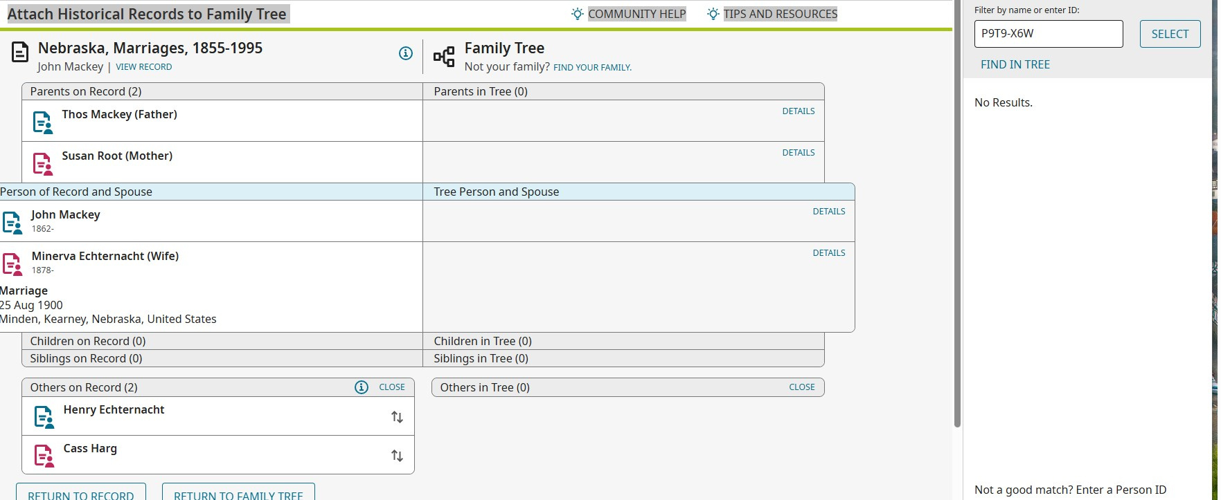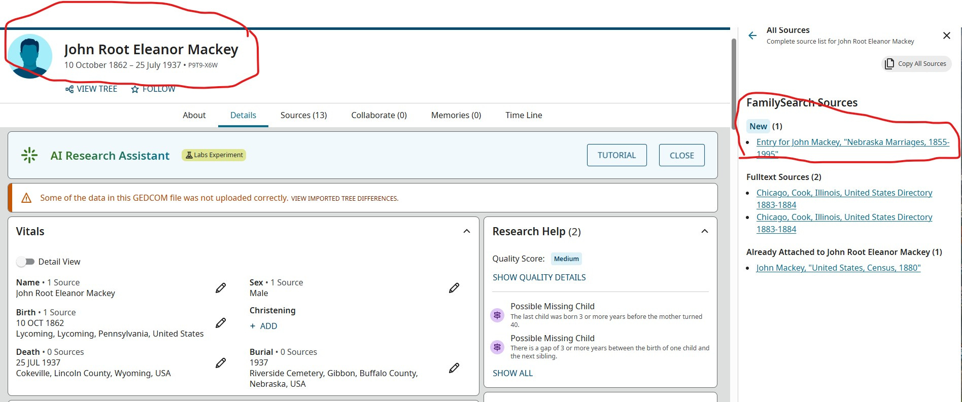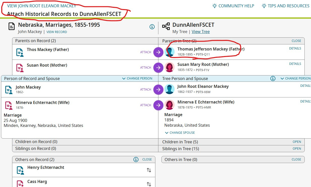 If you look at the screen shots The source shows up as the tree on Familysearch, but that's the wrong tree. Was working on Cet Tree, was nice it shows, but the tree wrong tree. I was working with was the CET tree not Familysearch tree. Check the differents PIN on John Mackey P9T9-X6W and 29HC-TW8 Screenshots.