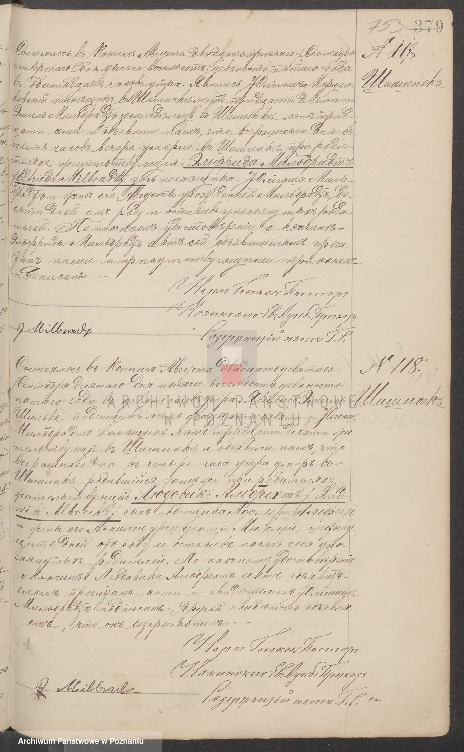 Death Record No. 117, Konin, Evangelical-Augsburg Parish, of Elzbieta (Elisabeth) Milbradt, who died in Szyszynek on 3rd September 1895, death reported on 4th September 1895, she lived 10 days, daughter of Juliusz Mibradt and of his wife, Augusta Milbradt. At death she left those parents. Death reported by Juliusz Marcinkowski, a laborer, 39 years old, from Szyszynek, and Emil Milbradt, a farmer in Szyszynek, 37 years old.
