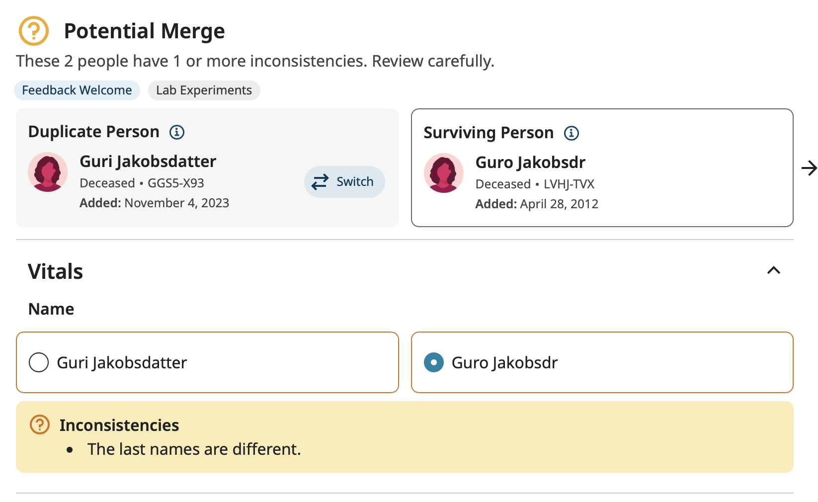 -dr, -dt, and -dtr are such standard abbreviations for -datter and -dotter that this really should not get flagged as different last names. They are the same.