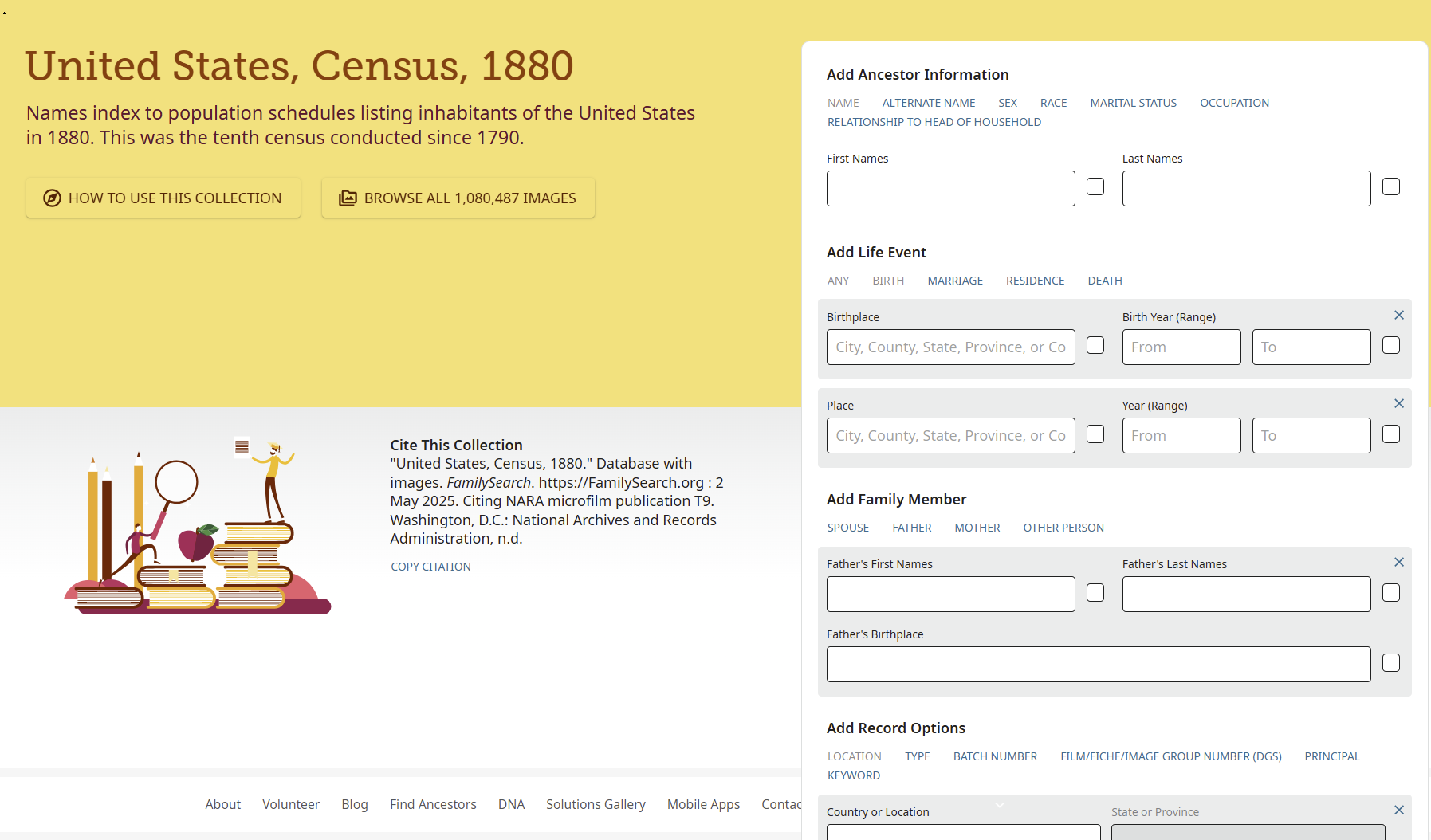 Starting from the 1880 US Census https://www.familysearch.org/en/search/collection/1417683