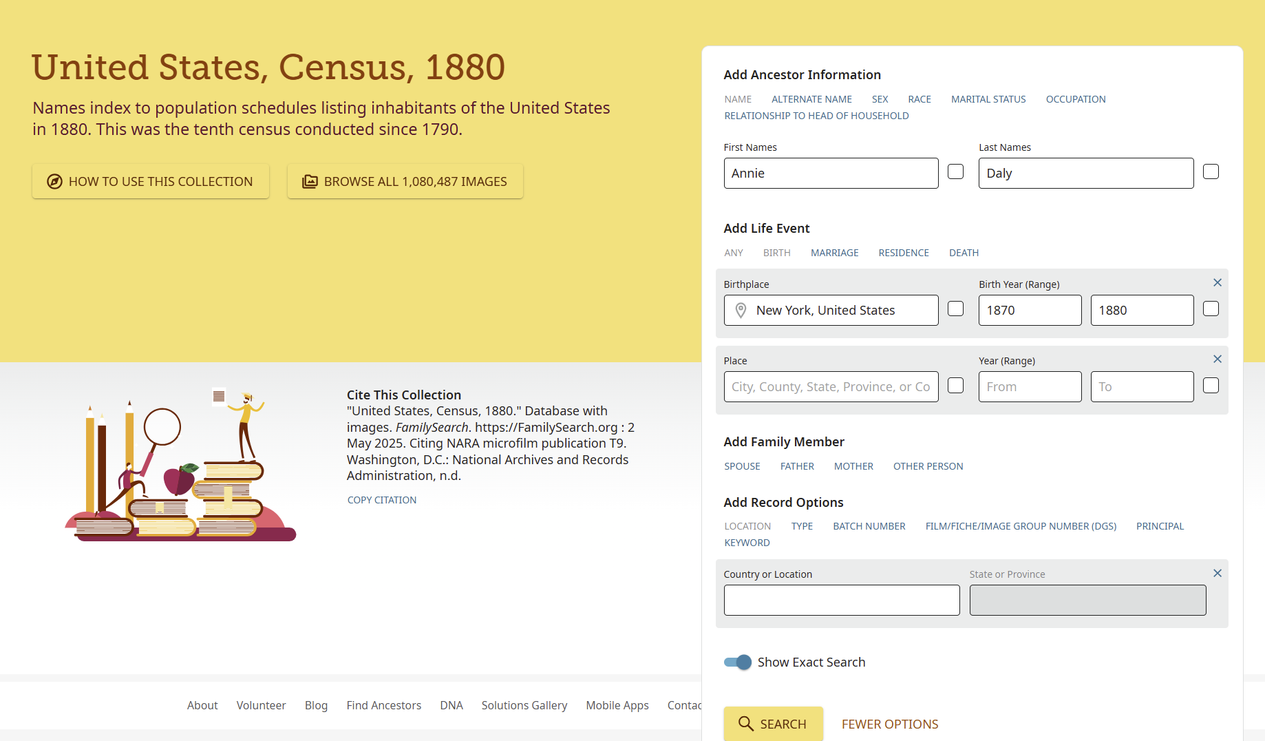 I'm not downplaying what appears to be a genuine problem (I get exasperated when I want to make a search on the same individual in Find My Past and always have to retype the full detail when switching, say, for a search in one census collection to another), but really can't see why these "quick search" pages were ever introduced, given their very limited ability to produce useful results, given the limited options.