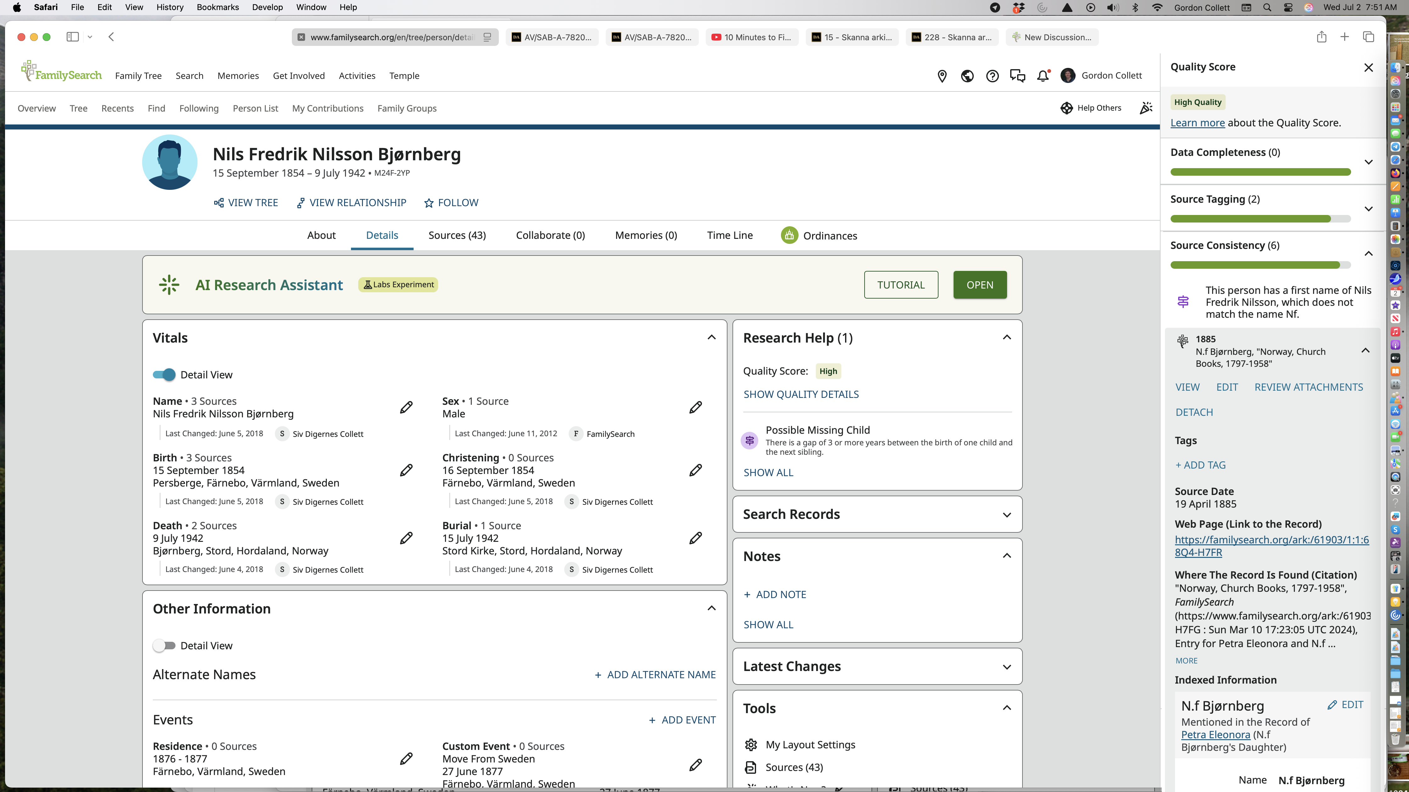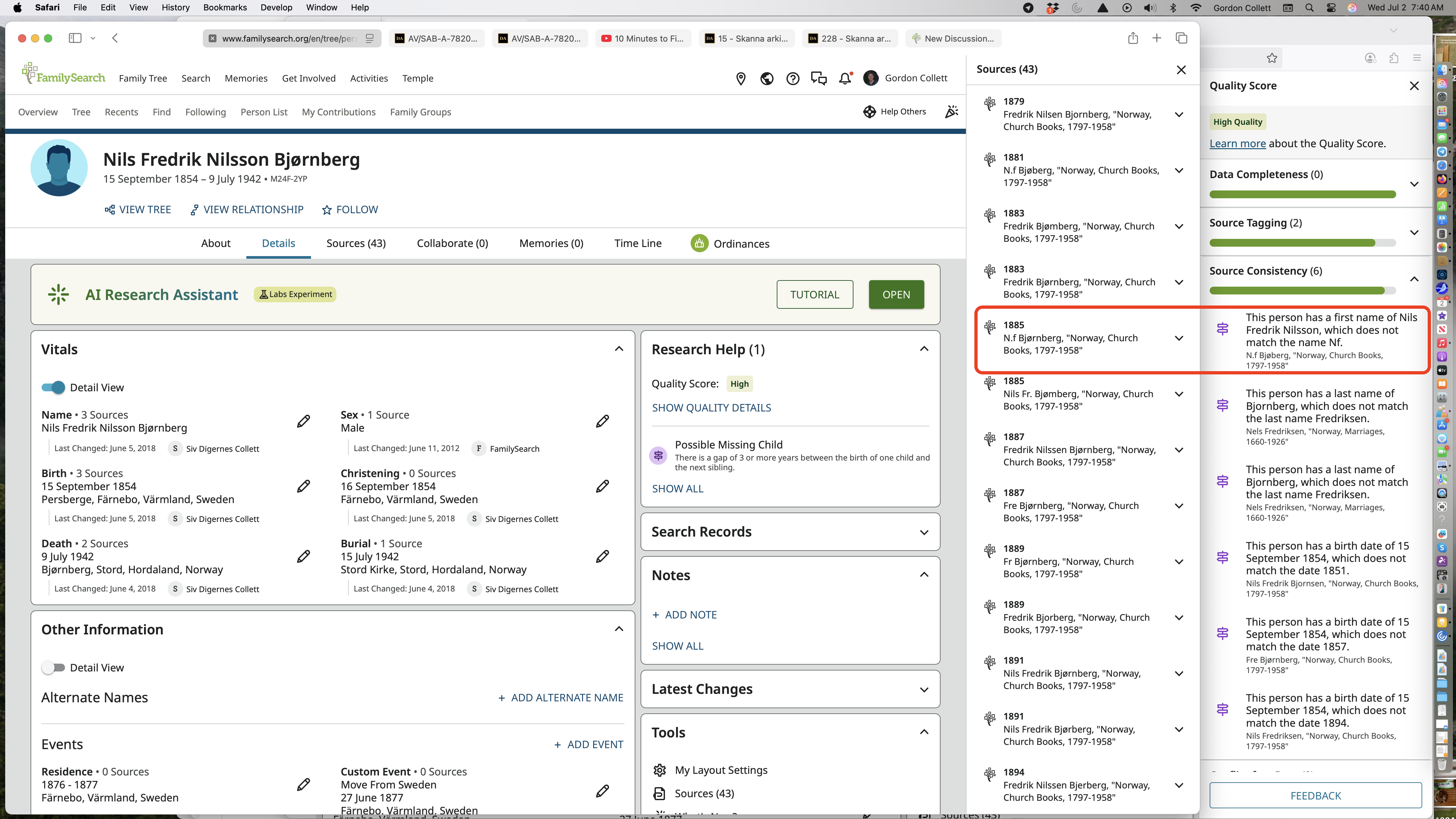 The main advantage of this is that it allows me to see the full profile information, the quality score information, and the source the quality score is complaining about all at the same time. Currently if I am working from the Details tab so that I can see the profile and source information at the same time, I have to remember the title of the source and the notice about the source in the Quality Score column as I scroll through the 43 sources in the Sources side panel that this person has.