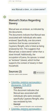 Manuel was a slave owned by Cayetano Rengifo. However, ChatBot insists in interpreting the documents and indexing in the opposite way, as if Cayetano Rengifo was owned by Manuel.