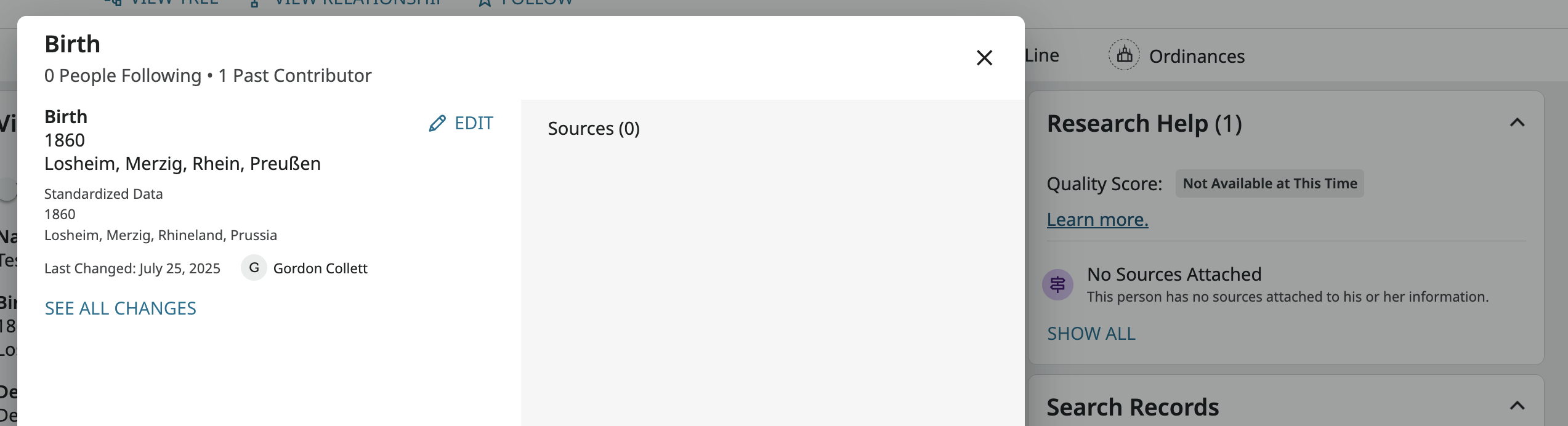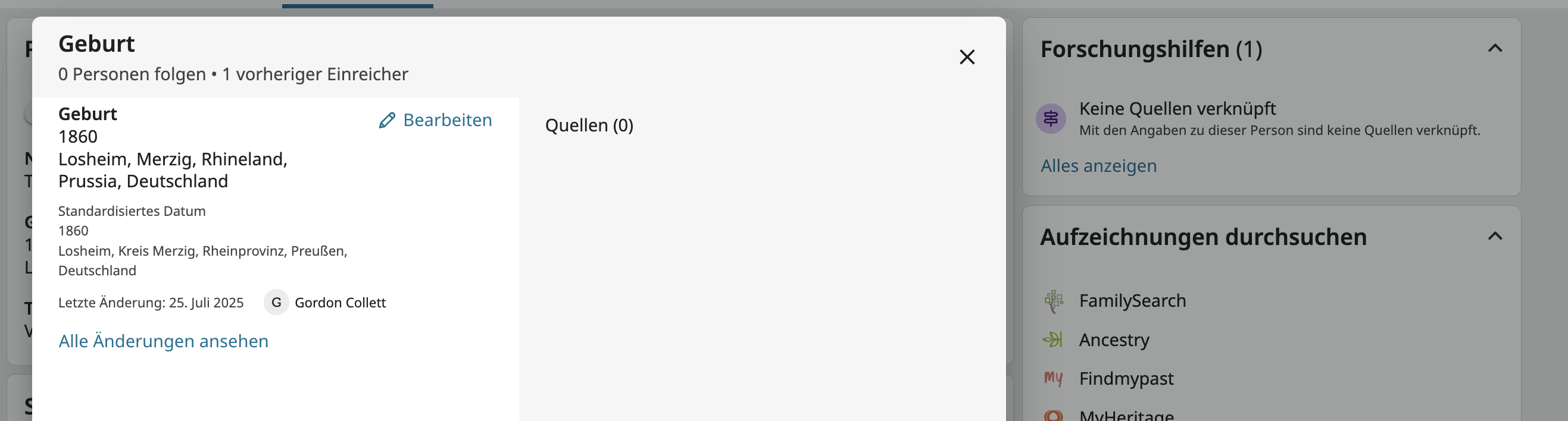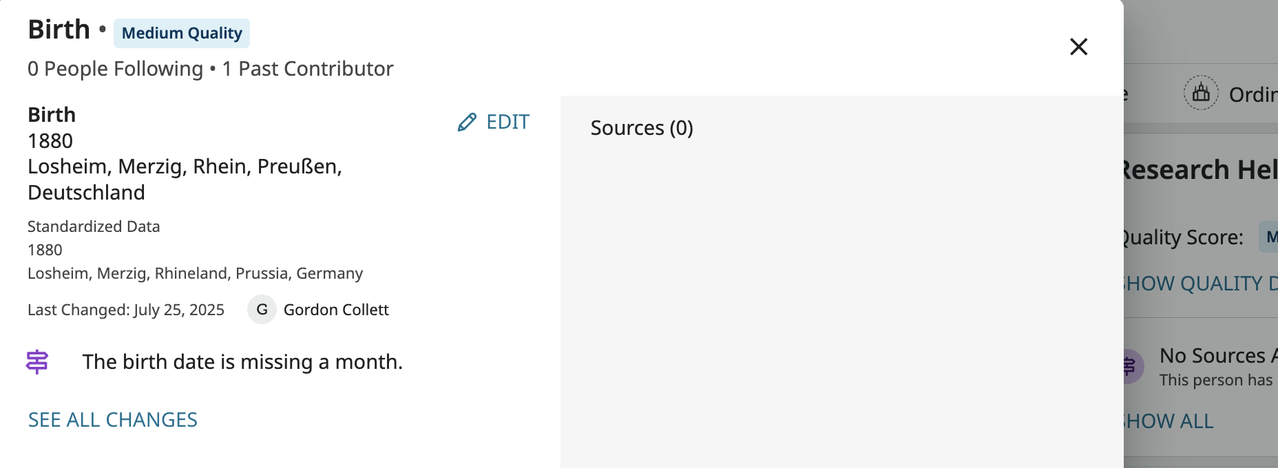 We will look into the Quality Score and the way it handles the burial dates prior to 1920 for Germany. As well as the name spelling problem.