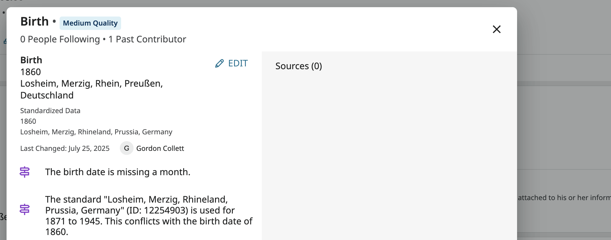 It is the Quality one that is constant in conflict, saying those places before 1871 are wrong when they are actually correct.