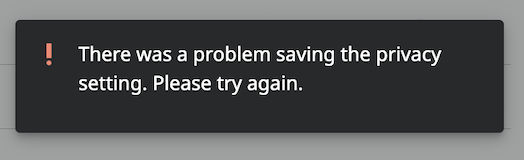 I am getting an error message when I try to set my tree to private. Tried two different browsers. Same message received on both. Anyone know what the issue is?