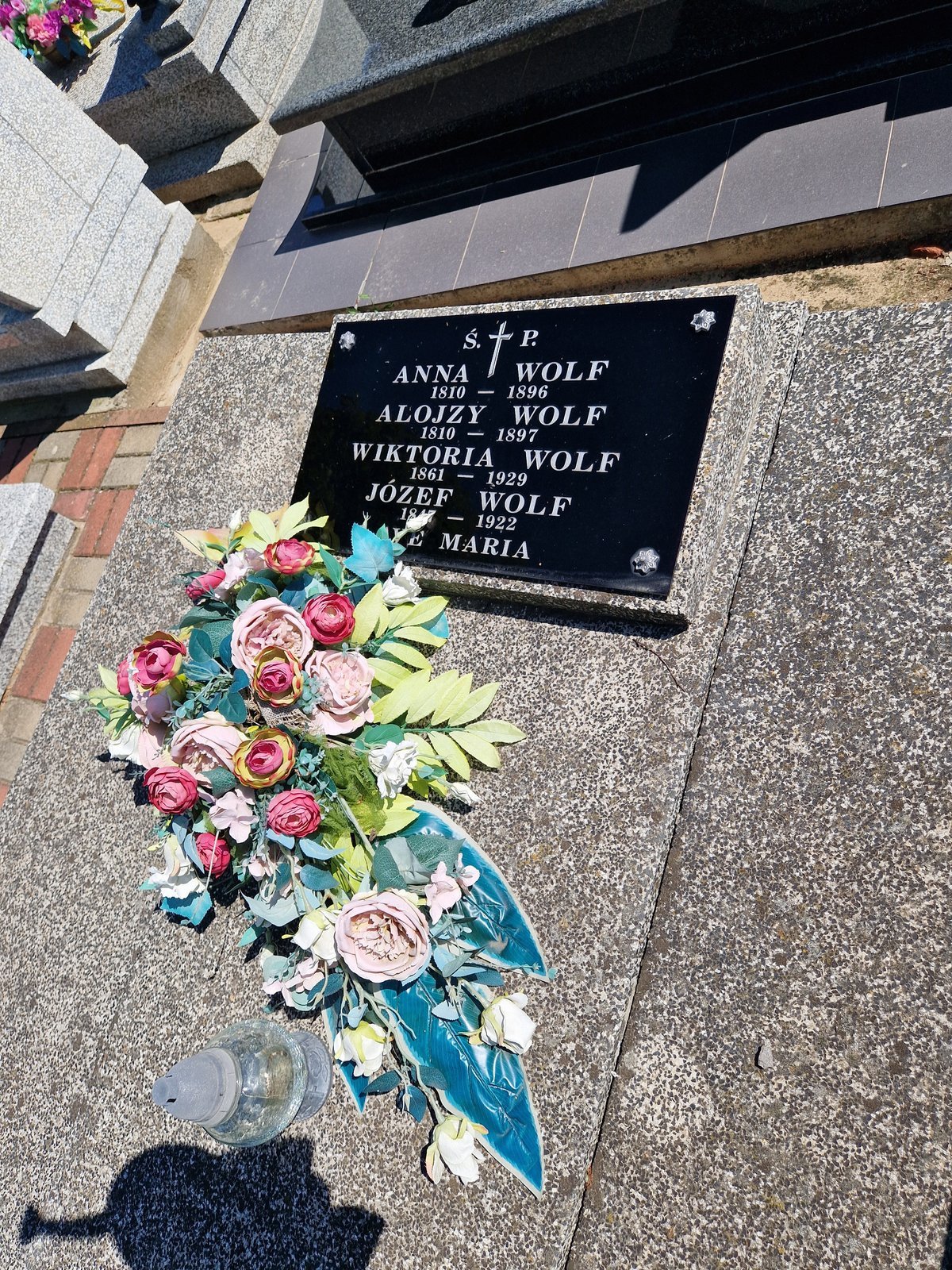 While roaming the cemetery in Miedzylesie, Turek, I found the grave of my wife's ancestors, Alojzy Wolf and Anna (nee Worf). In this grave lie their son Jozef and Wiktoria. Who is Wiktoria? Is it Jozef's wife?