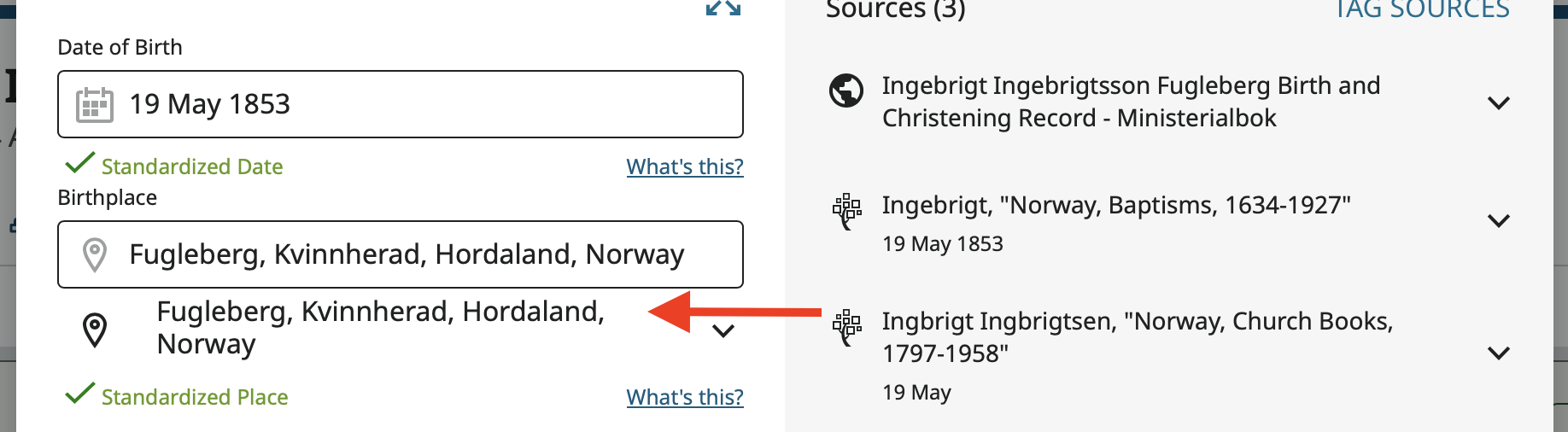 It will also quit confusing people when they see that if they enter place names in one language they only have one place name but when they then change languages on the website, they suddenly have two place names. I've seen people think that they somehow "unstandardized" the place name and then start editing all the place names to make them "standard" again. There have been a few users here who have gotten very annoyed because they correctly entered their family residences in German and other users have come along and changed them to English to "standardized" them. Ideally, understanding Family Tree's dual place name system better will prevent this.