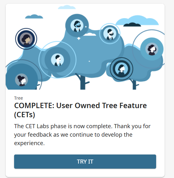 My comment about all those with CETs retaining the feature after the recent "graduation from Labs" is for everyone's knowledge. No one who has a CET should have their access to the feature negatively affected by the application system being retired.2 -