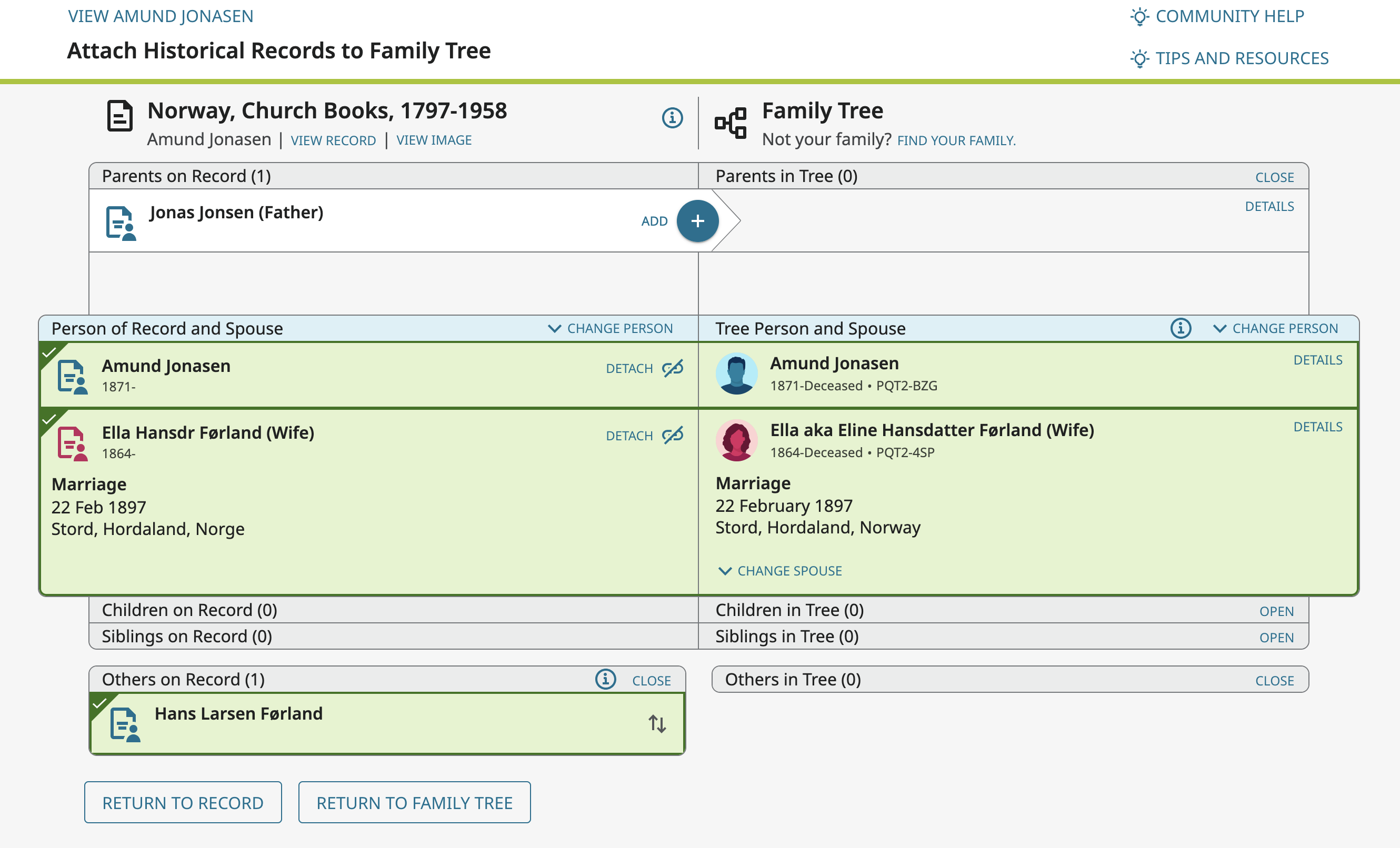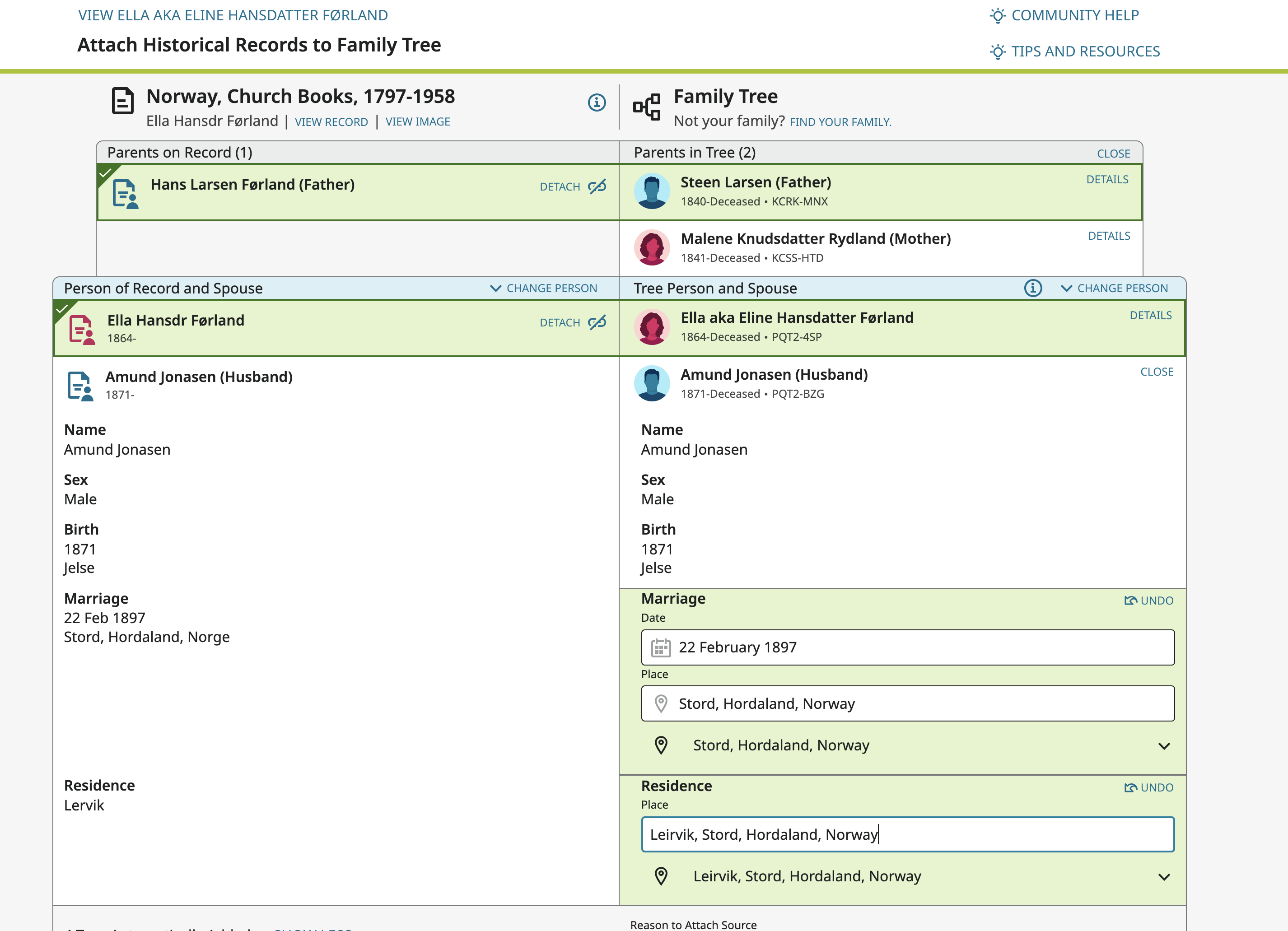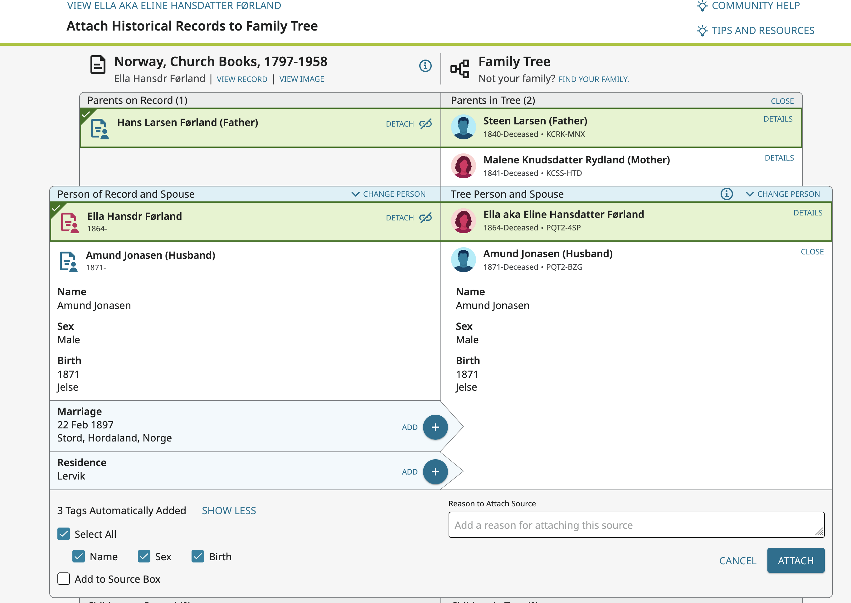 For example I want to attach this record and add the spouse and marriage information at the same time: