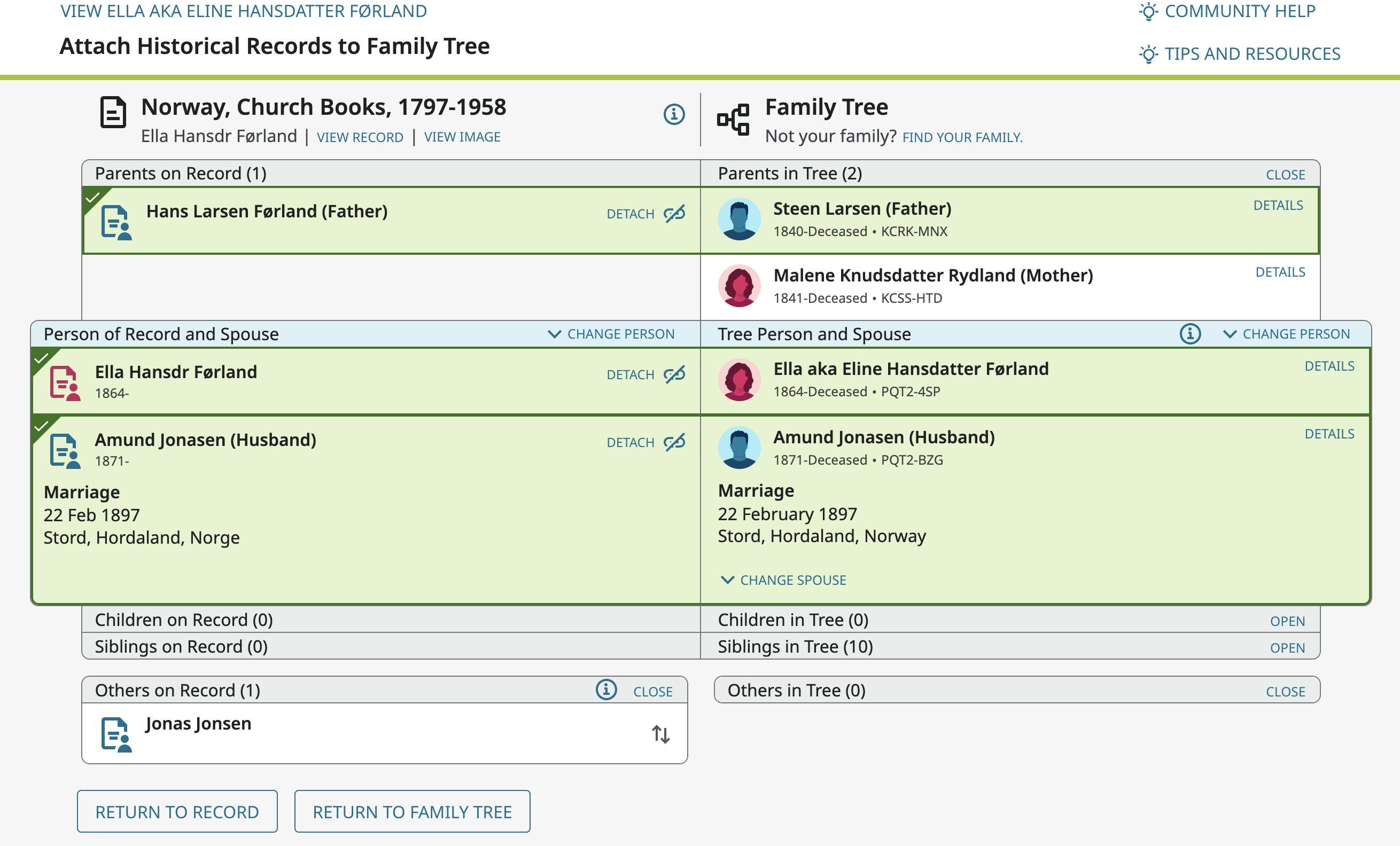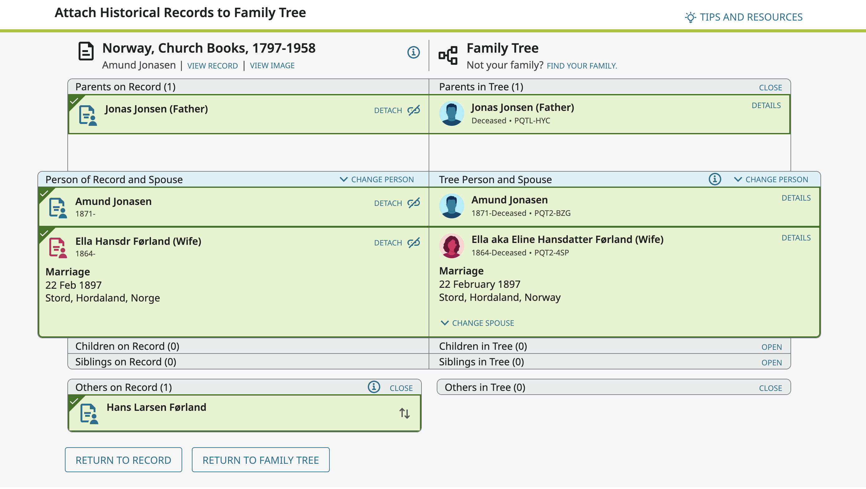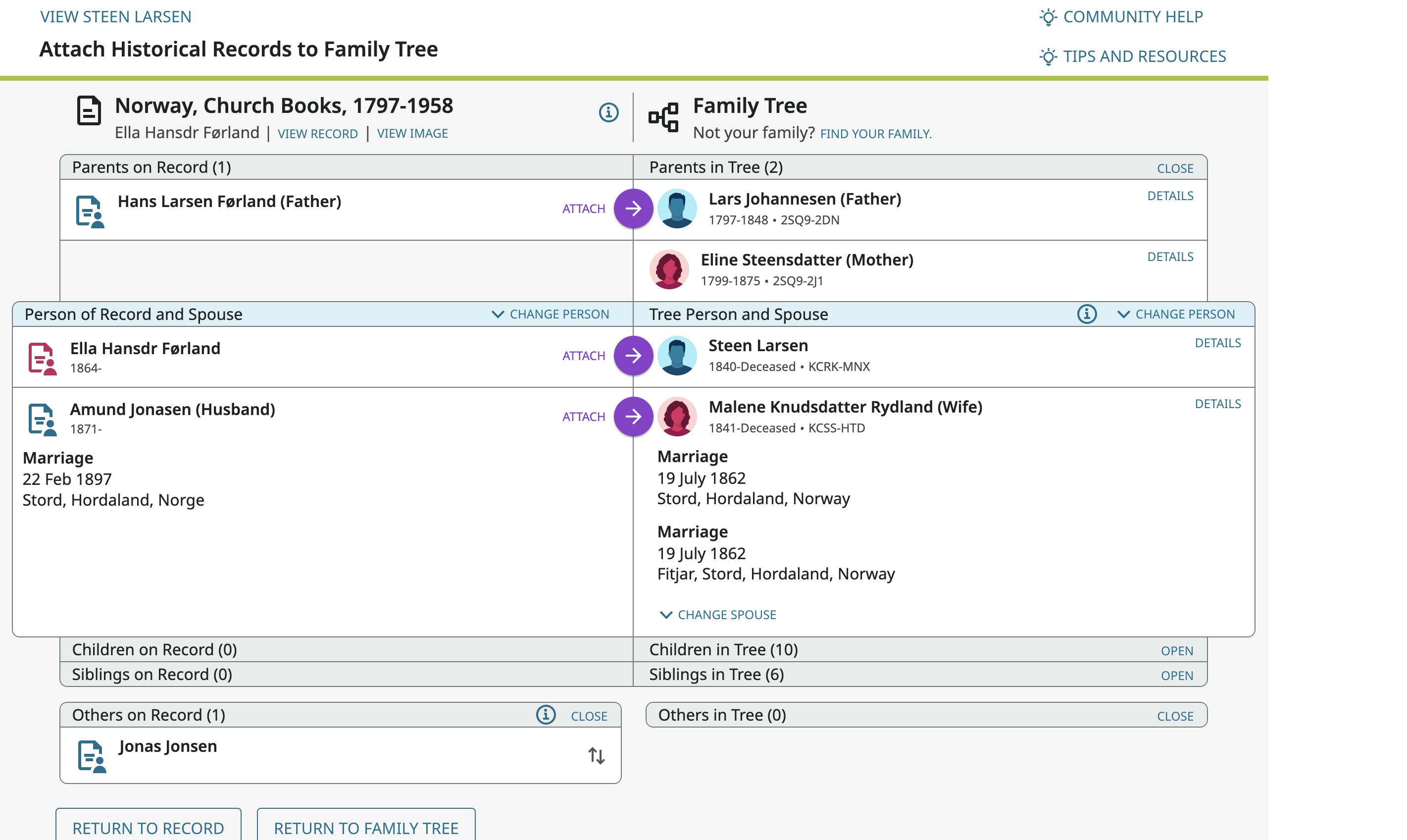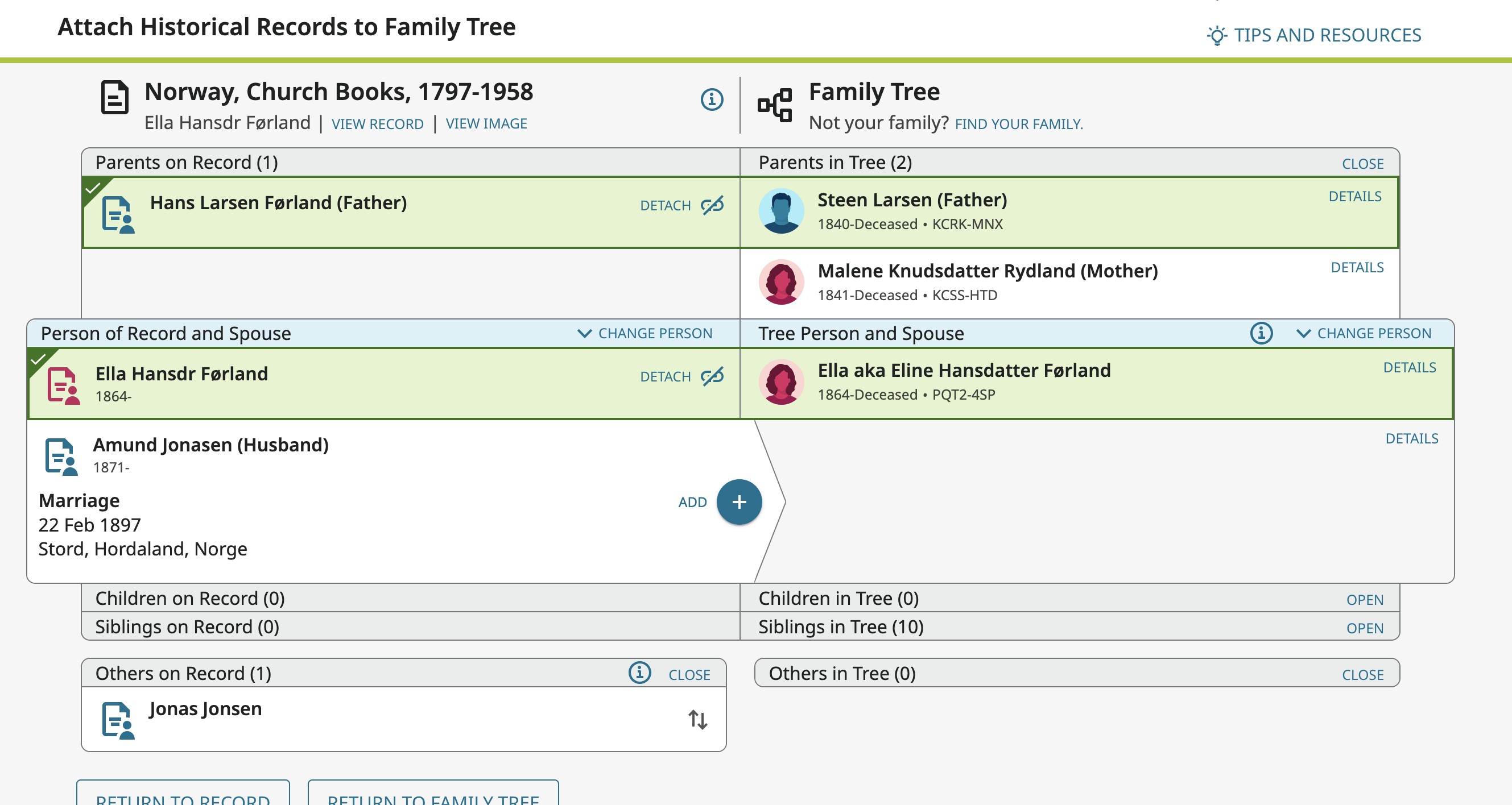 For example I want to attach this record and add the spouse and marriage information at the same time: