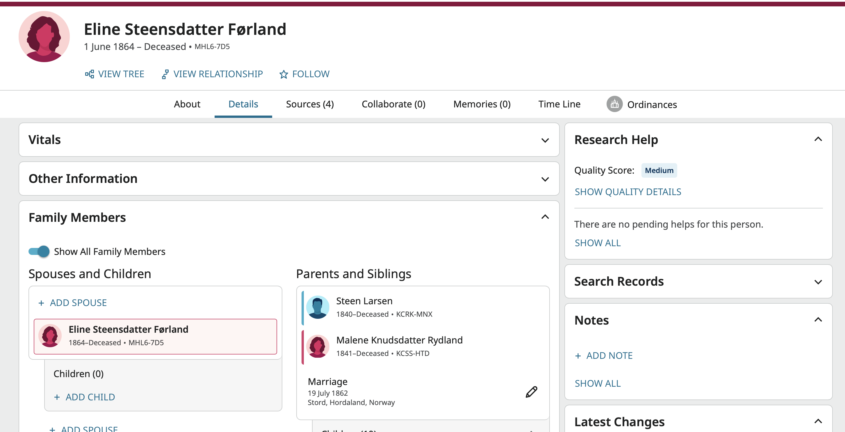 Of course, these are issues which probably only arise if one has already done the research before updating the FamilySearch tree (otherwise one would not be adding in a person currently unknown to the system). I mean by that, otherwise one would not be sure it was the right person, so just randomly adding relationships based on name similarity would be unwise.