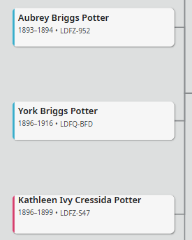 I have just added No Couple Relationships under Facts in the Other Information sections of three siblings. The unexpected behaviour affecting just one of them is that it has now made her name disappear from Landscape view. See https://www.familysearch.org/en/tree/pedigree/landscape/L8WG-RXP . Her ID is LDFZ-S47. If I delete the added "fact" the problem disappears. Any ideas why my actions appear to be causing this problem just with her?