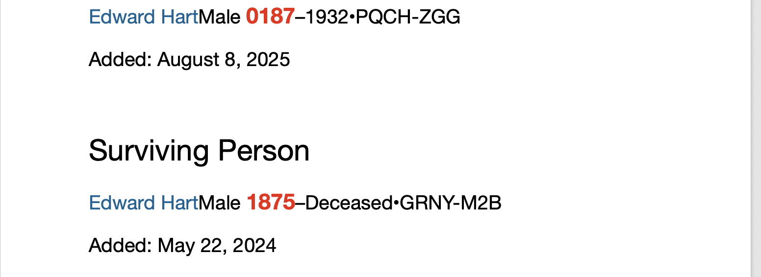 The original date was “1 Apr 1875” but FS somehow had discombobulated this into “1 April 0187” and suggested they were over “120” years old.0 -