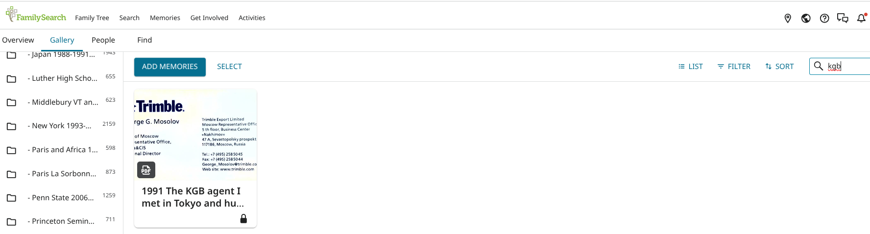 But notice what happens when I go into the specific album in which my search term, "KGB" actually lives: