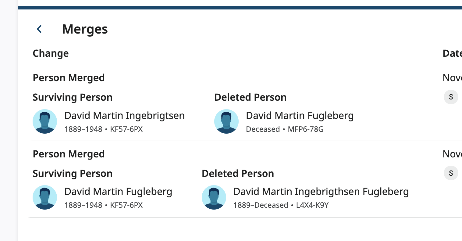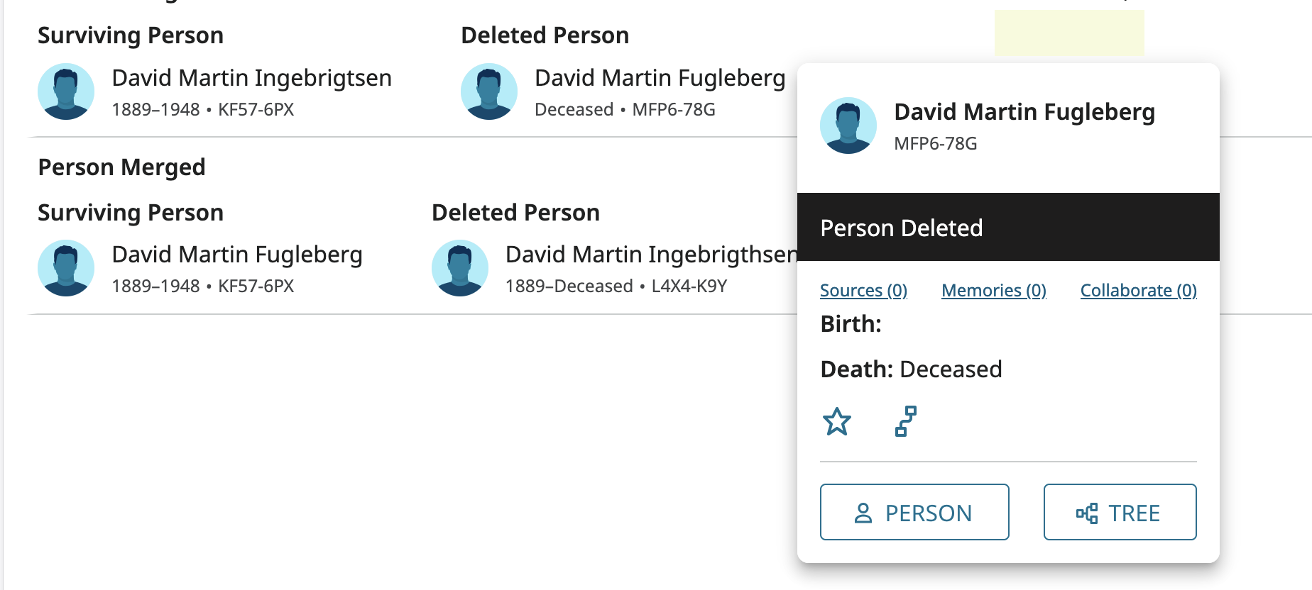 Click on the name of the deleted person: