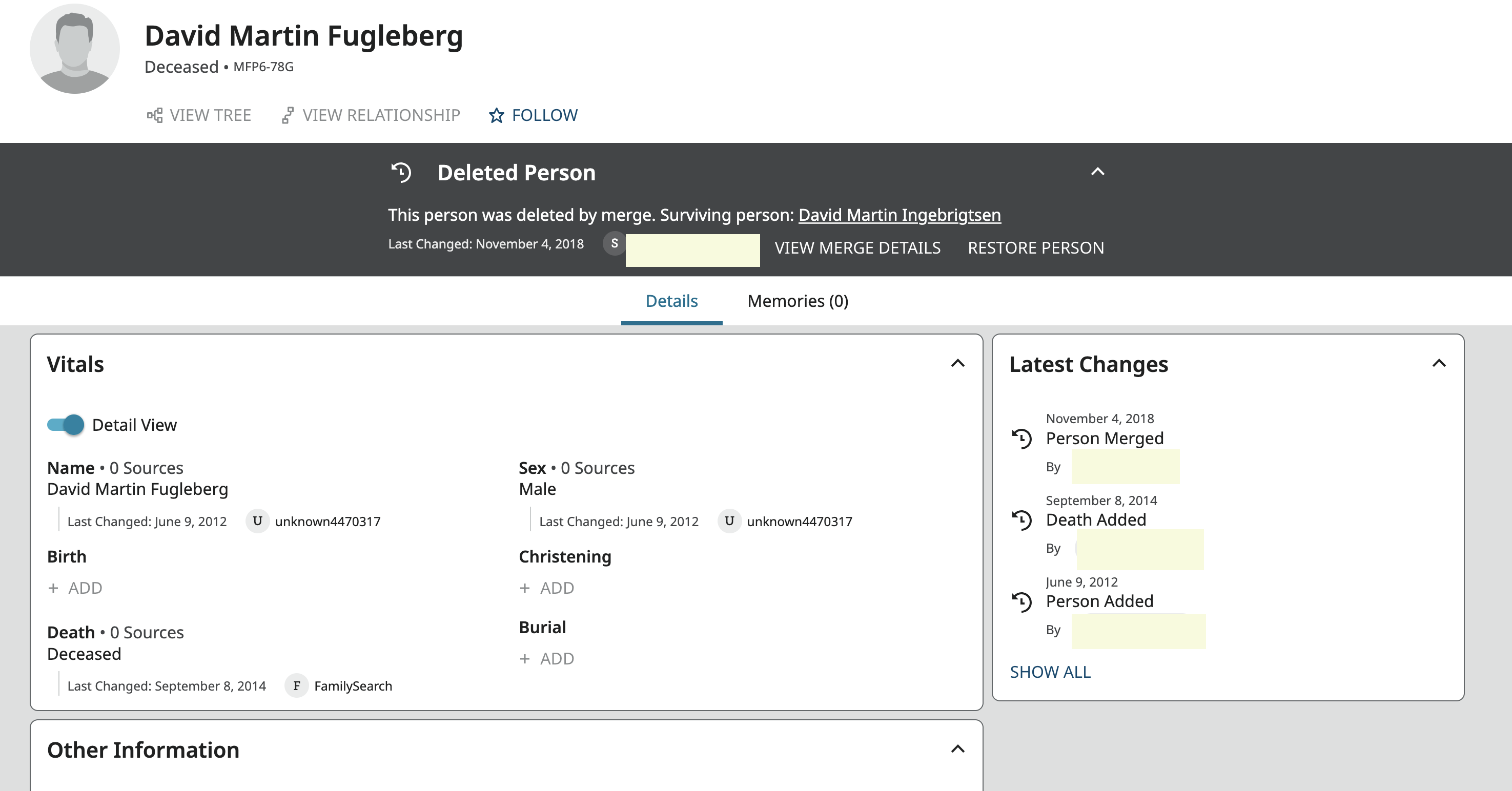Can't access updates of the deleted person