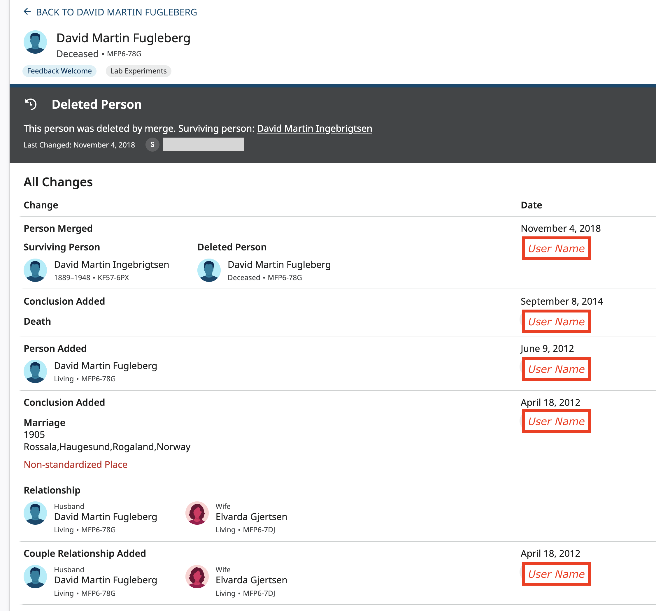 Could you walk us through how you were attempting to access the updates on the deleted person so we can better answer your question?