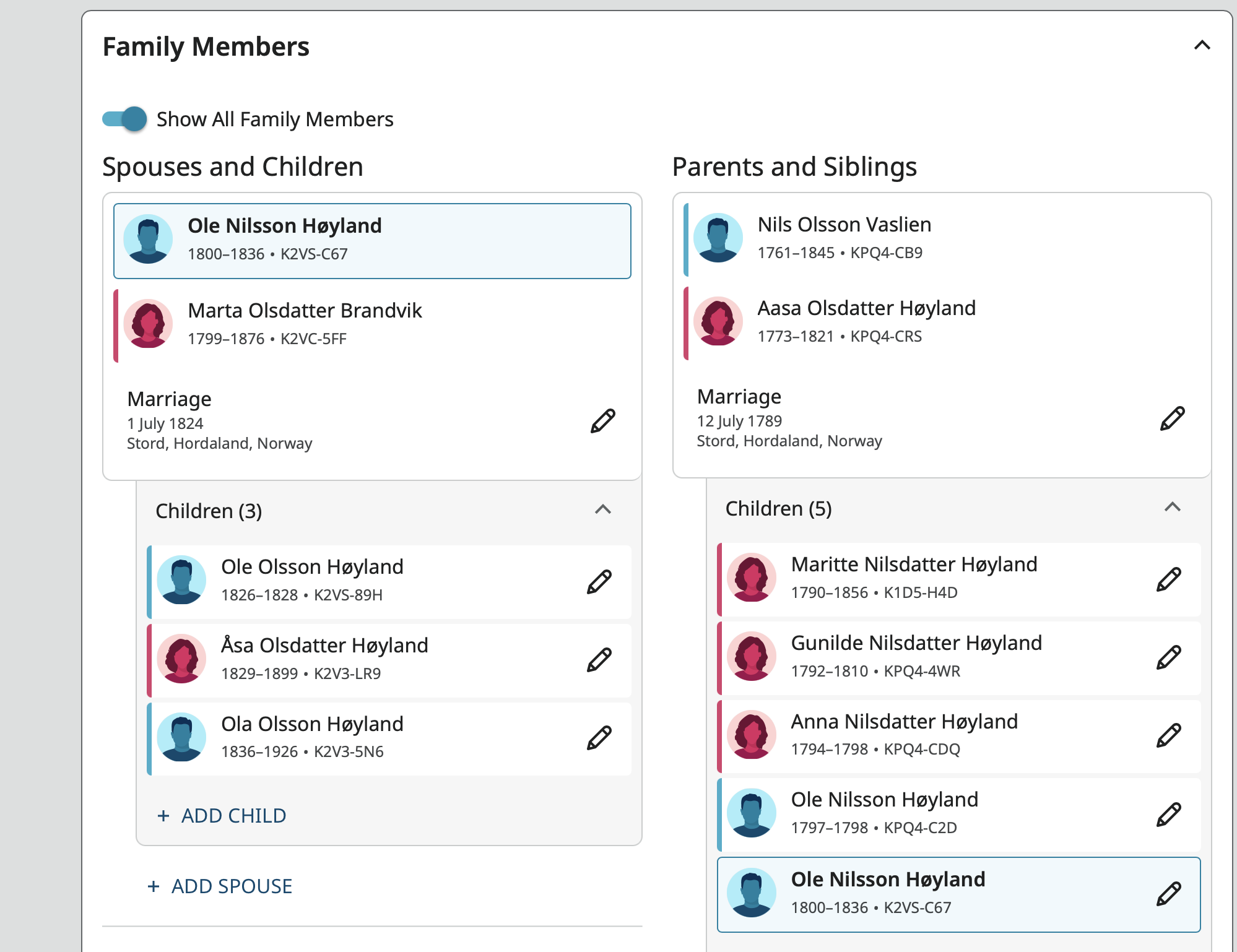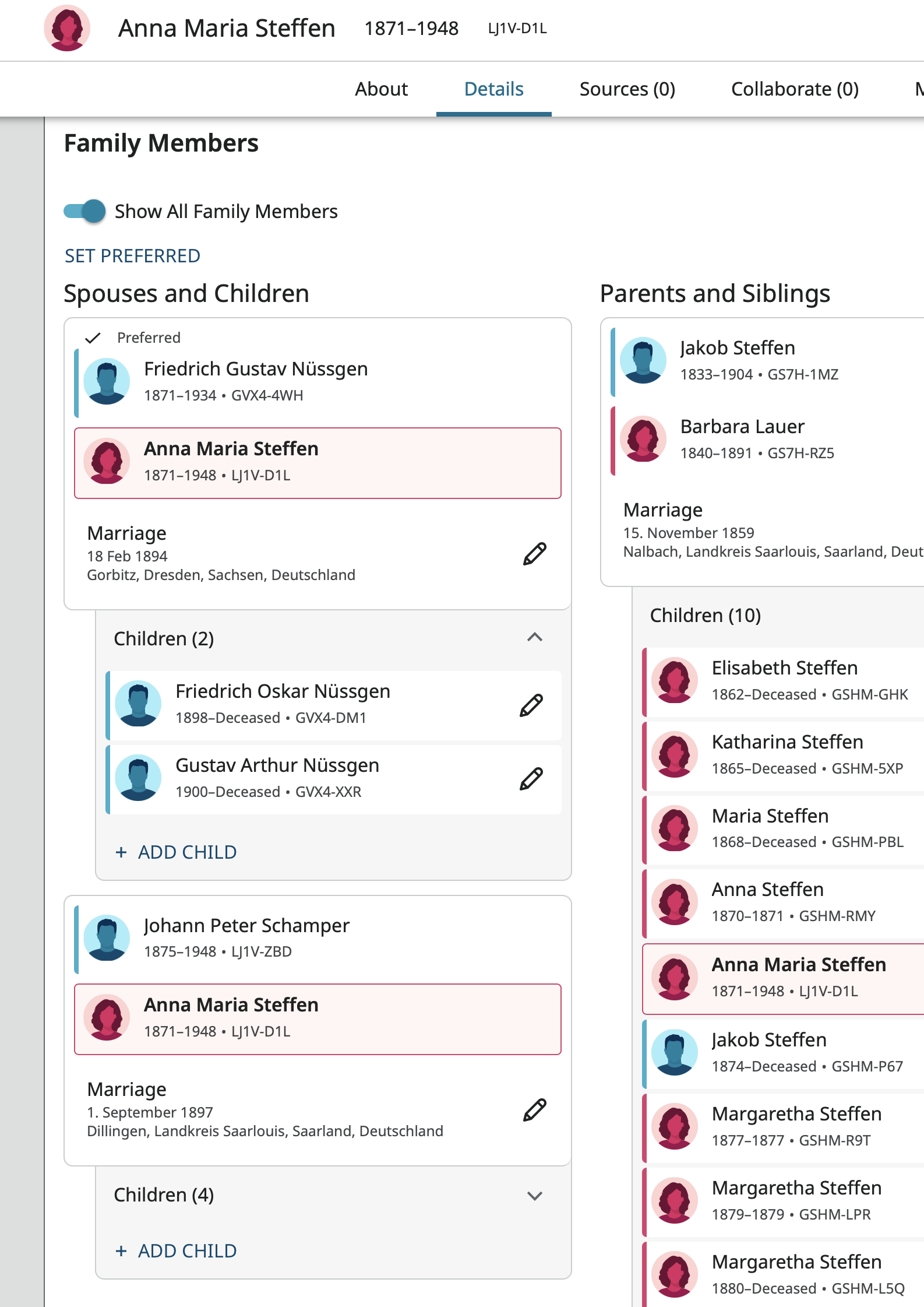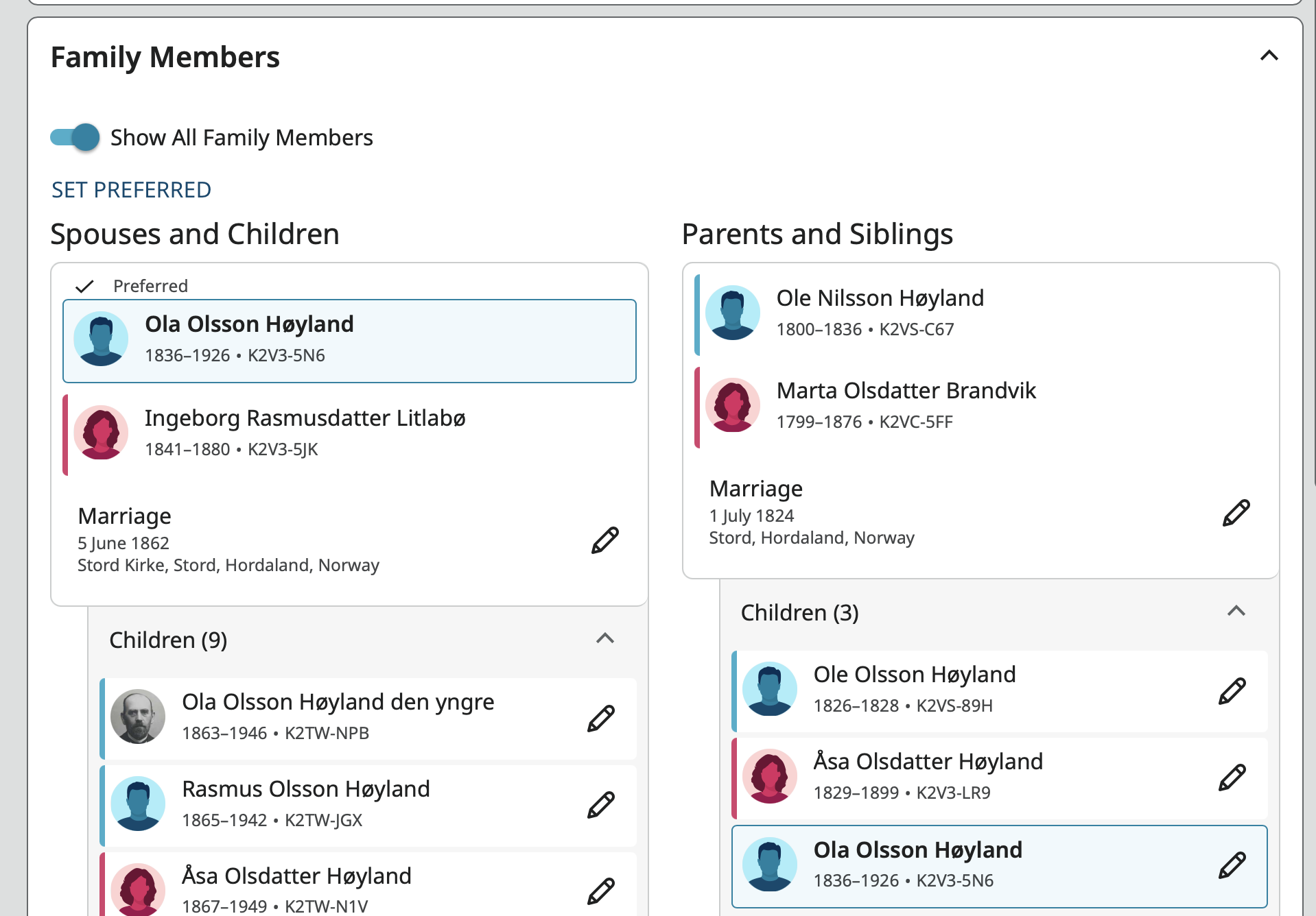 Over the past day or so the Show All Family Members toggle in the Family Members section of the profile page quits working periodically. When I open a person's profile page if there is more than one spouse only the children of the first spouse shows as if the toggle is turned off. I can get all the children to show if I turn the toggle off then on again. Sometimes it stays working for a while but eventually when moving to a new profile all the children except for those in the first family quit showing.