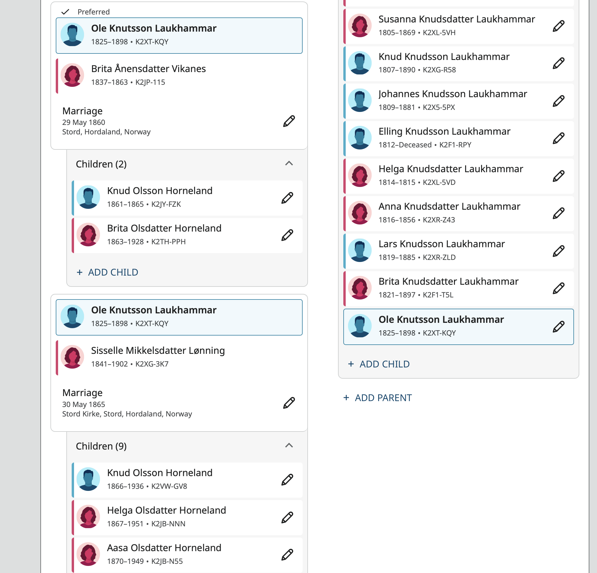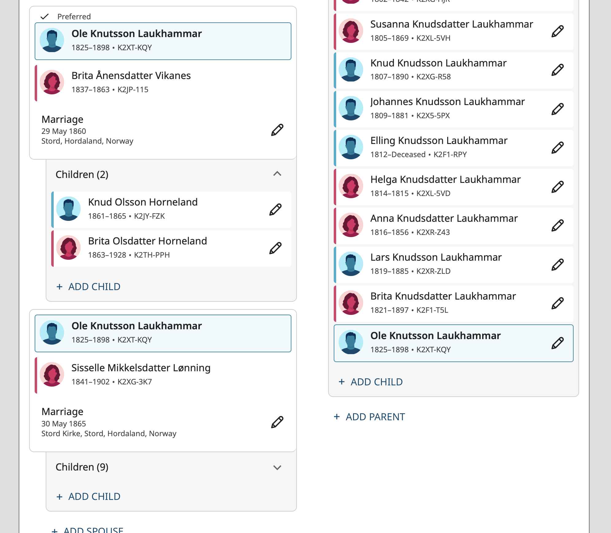 Here are two more profiles in which the individual has more than one spouse:
