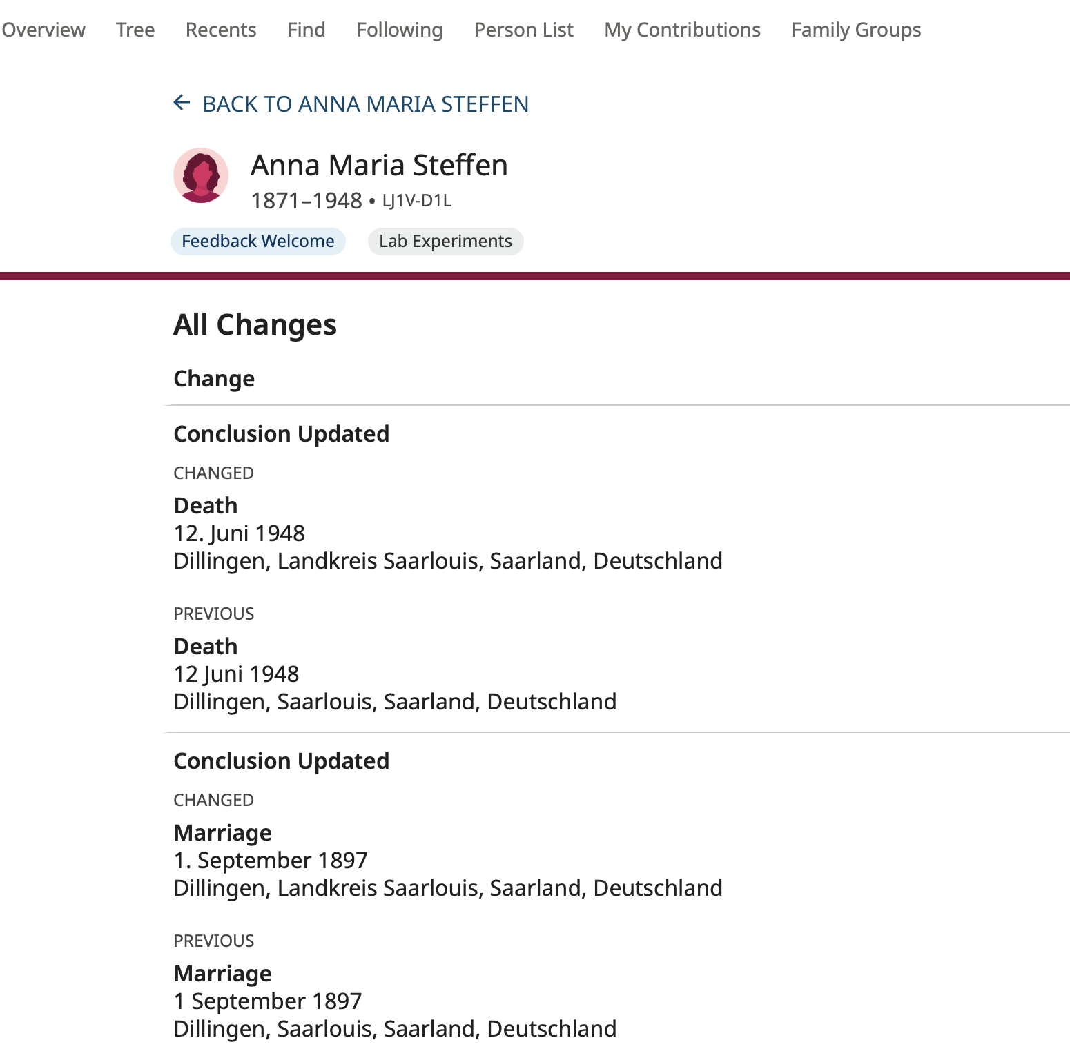 @Ashlee C. It's happening again this morning on this profile https://www.familysearch.org/en/tree/person/details/LJ1V-D1L :