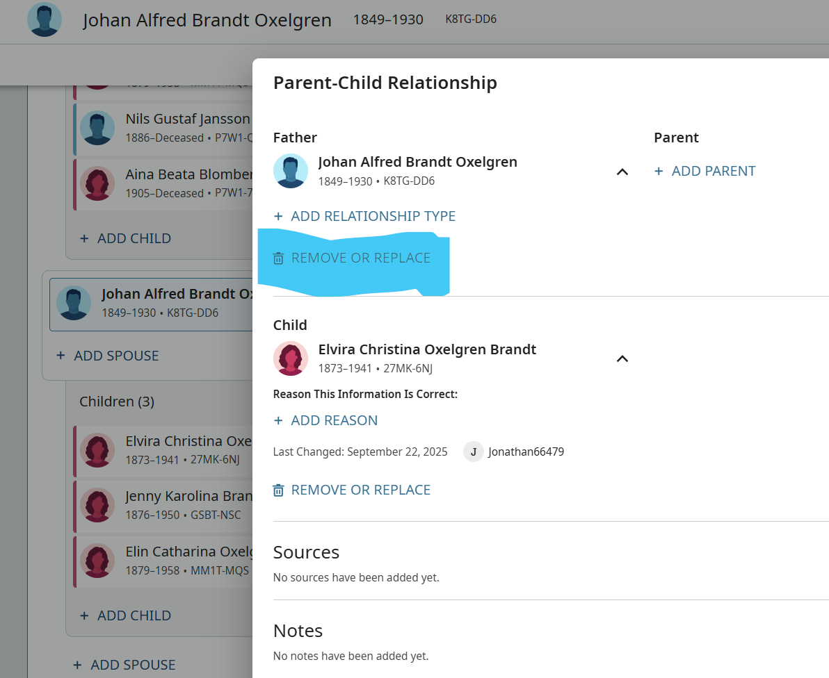 K8TG-DD6 is the father to some of his children twice, but their mother is only present once. How do I fix this?