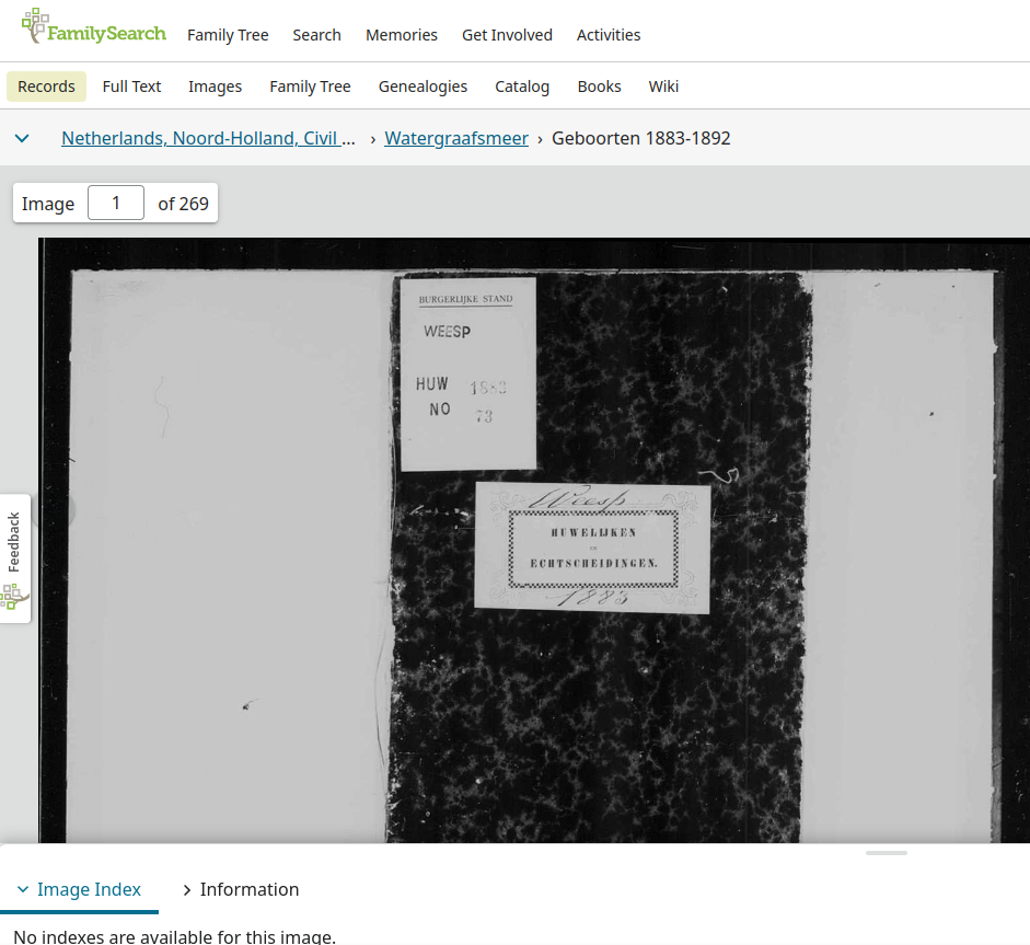 @gjt47 To clarify for other users, neither of these records are indexed so a better description of the problem would be to say the "images are swapped". When following the waypoints (breadcrumbs) to each of these sets of records—yup, it's a nuisance to be led to the wrong set of records. However, currently waypoints are not being updated as we are moving towards using the Catalog and/or Images to access unindexed records. The records for Watergraafsmeer and Weesp are found on the same film and are correct in the Catalog and in Images: