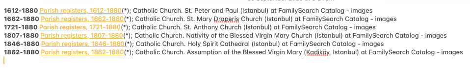 Does anyone know if there is another way to access Turkish Parish Records, particularly those of the Catholic Parishes in Istanbul? I know they are accessible at the FamilySearch Library, but as I'm overseas, I typically access all of my resources online.