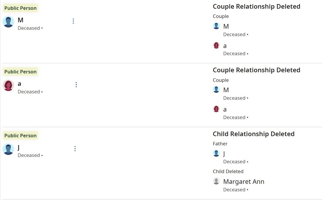 @Gordon Collett That's the really baffling part to me. He's upset because by removing the disproven parents, I am 'disrupting their ability to find their ancestors'. Like, they want to spin their wheels researching unrelated people? And he goes on: "Without solid birth records all that anyone can do is make an educated guess about parentage. They agree with that approach. I know you don't like it, but it is an acceptable method of doing genealogy." ("They" in this case being — allegedly — FS support.)