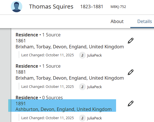 There is an 1891 residence for Thomas Squires M8KJ-752.