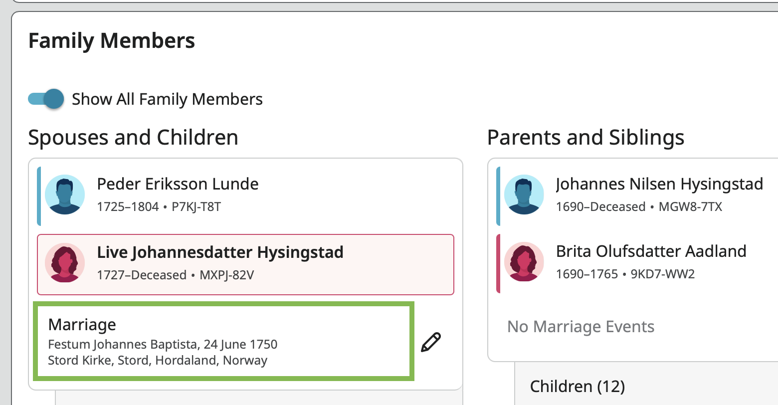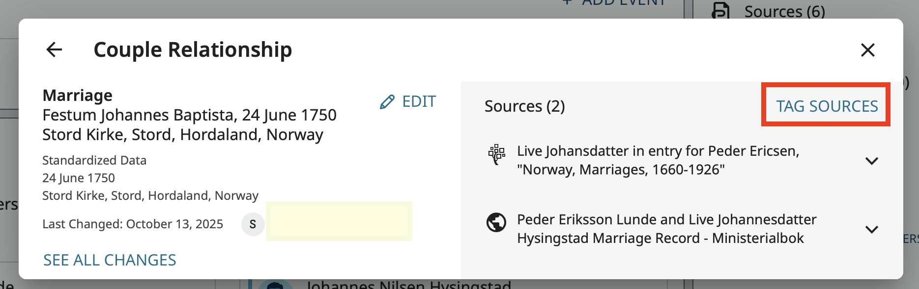 You can also tag existing sources from the Family Member section by clicking anywhere in the green box: